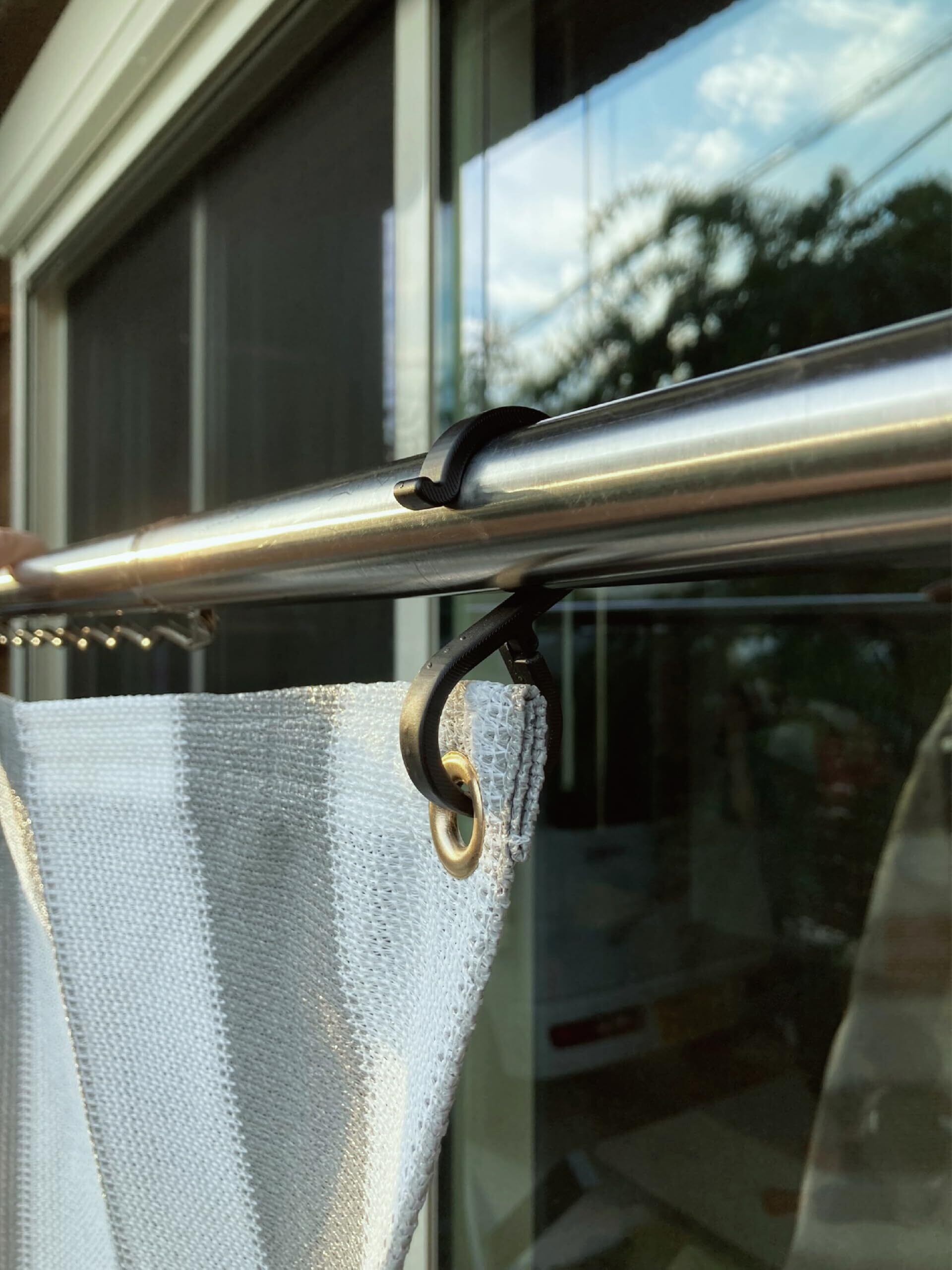 すだれやサンシェードを取り付けられ、外れないようロックがかけられる。