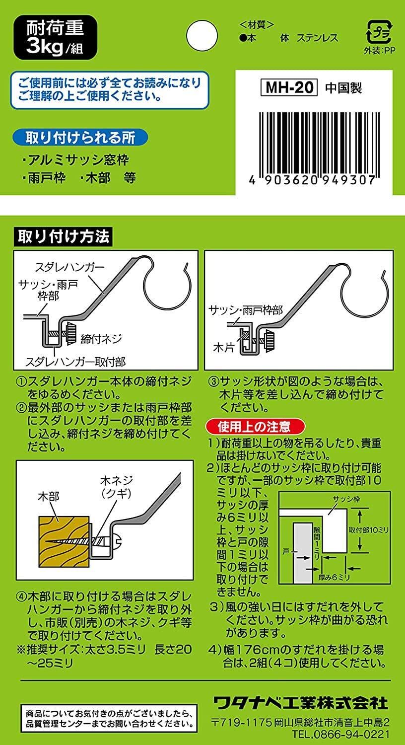 【数量限定】ワタナベ工業 すだれ掛け 丸竹さん用ステンレススダレハンガー MH-20 ブラウン 小