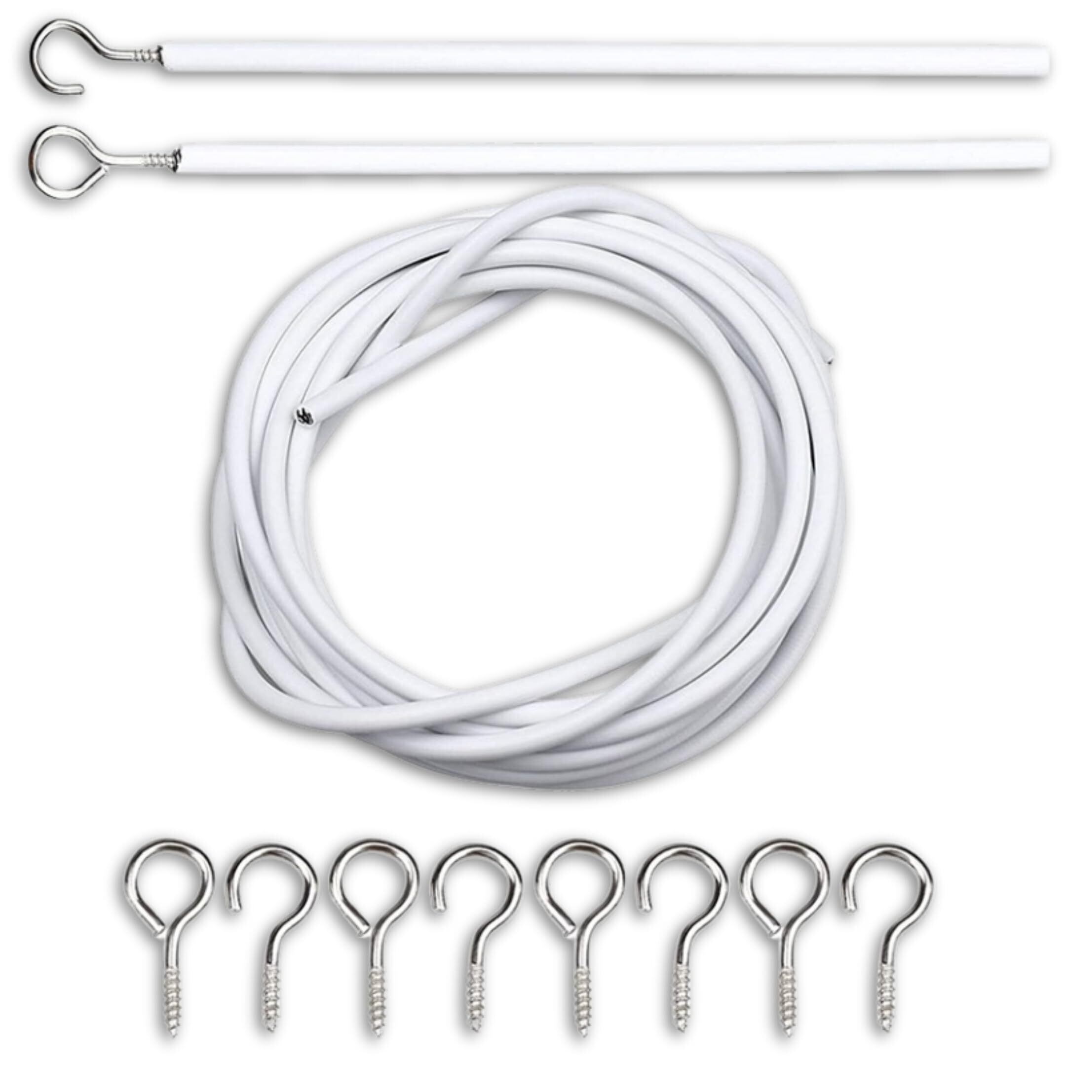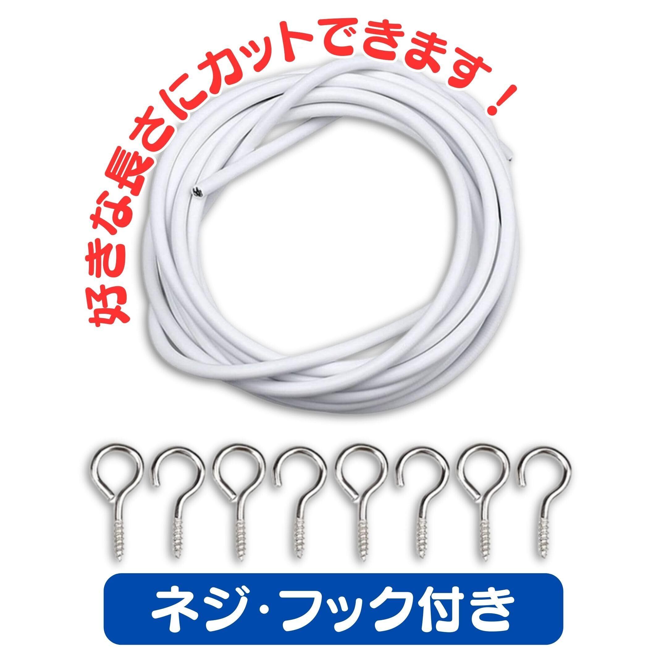 【在庫セール】カーテンワイヤー カーテンロープ レール セット ネジ フック 簡単 取付 白 10m