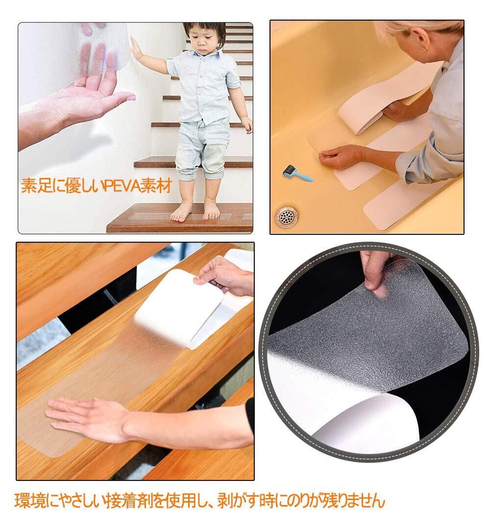 お風呂の浴槽や階段、キッチン、バスルーム、廊下などの滑り止めとしてご利用頂けます。