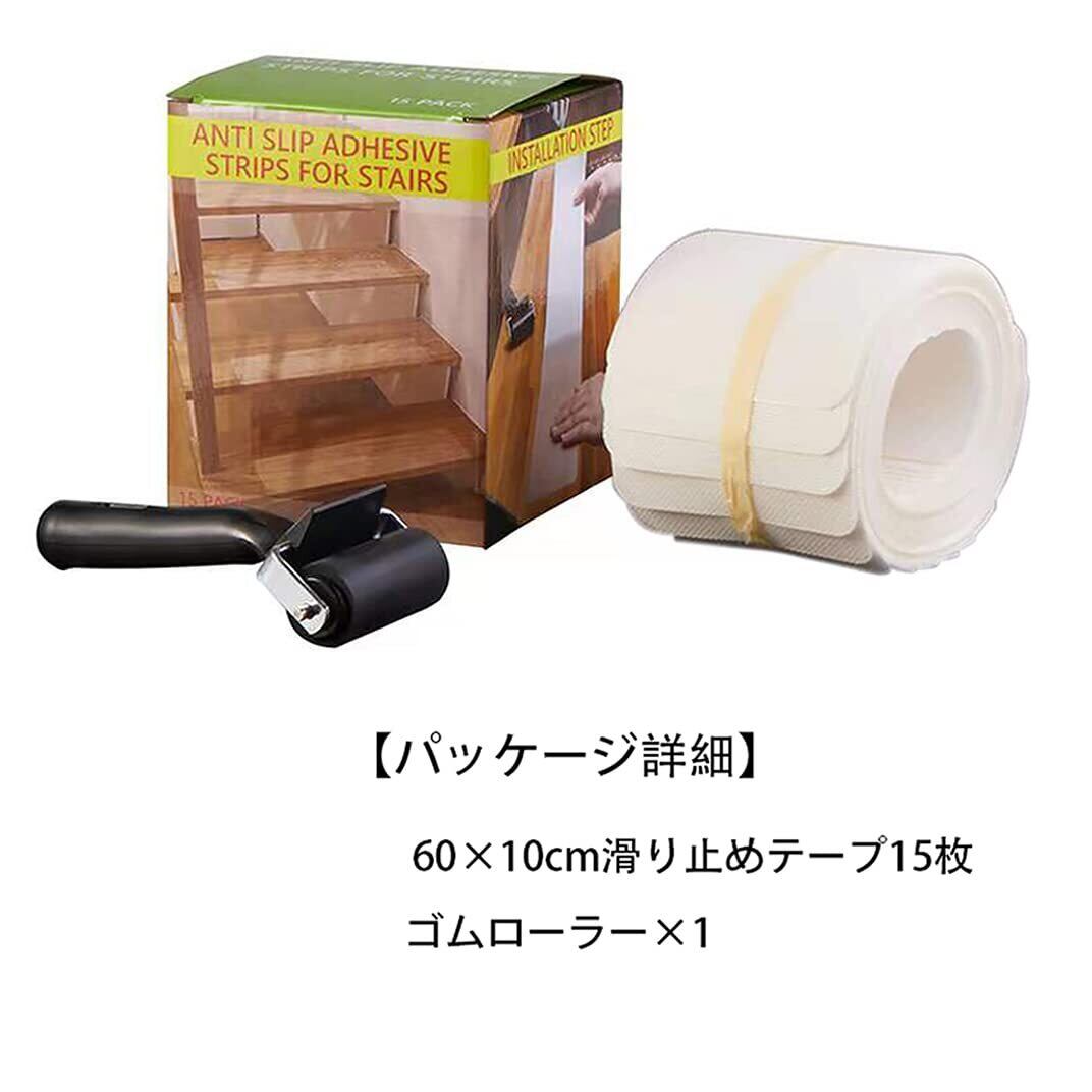 階段 滑り止め マット 滑り止めテープ 10×60cm 転倒 スリップ防止 屋内 室内 家 浴槽 剥がせる 透明 ペット 犬 階段マット PEVA製 防水 15枚 ローラー付き