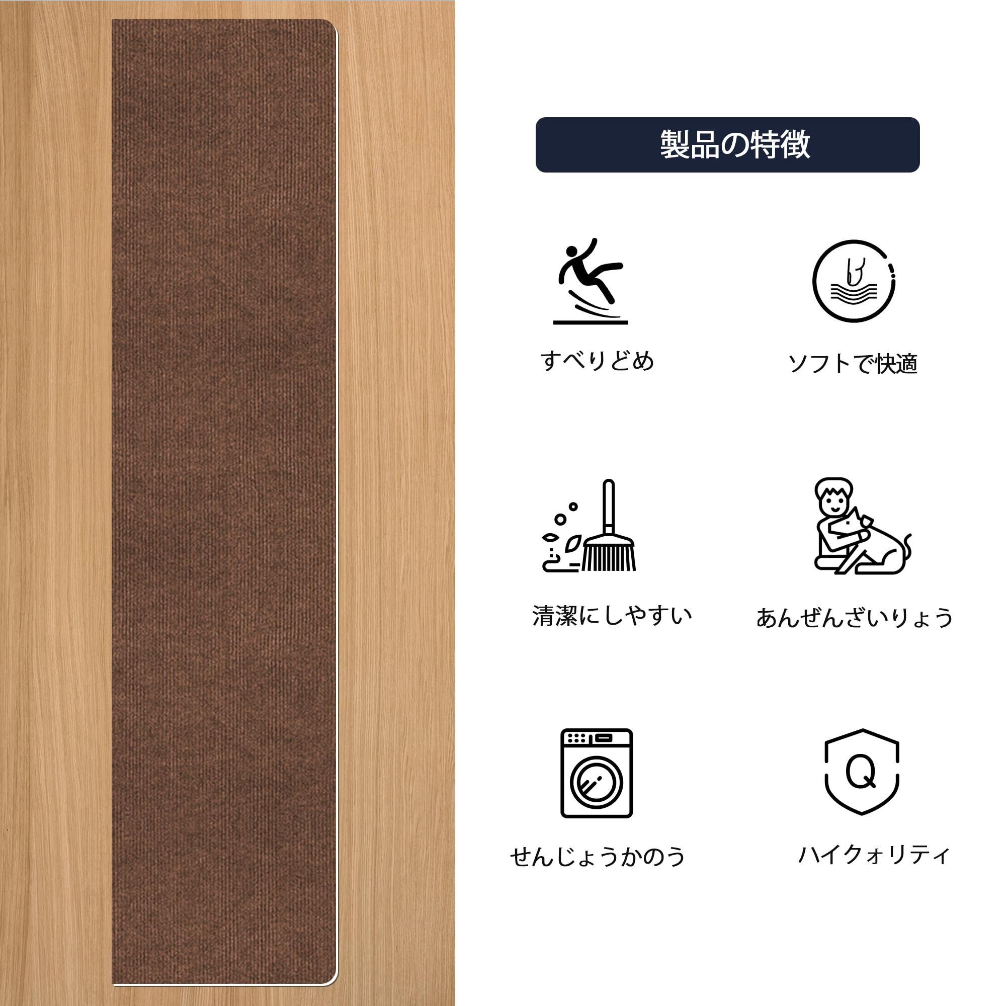 階段マット 階段用滑り止め70X22cm XIWEIYI 階段カーペット厚み4mm 階段敷き吸着マット床保護 ステップマット 階段クッション 転倒防止 キズ防止足腰負担軽減 ズレない子供や高齢者 ペットなどの安全対策に 猫犬階段滑り止めマット(ブラウン)