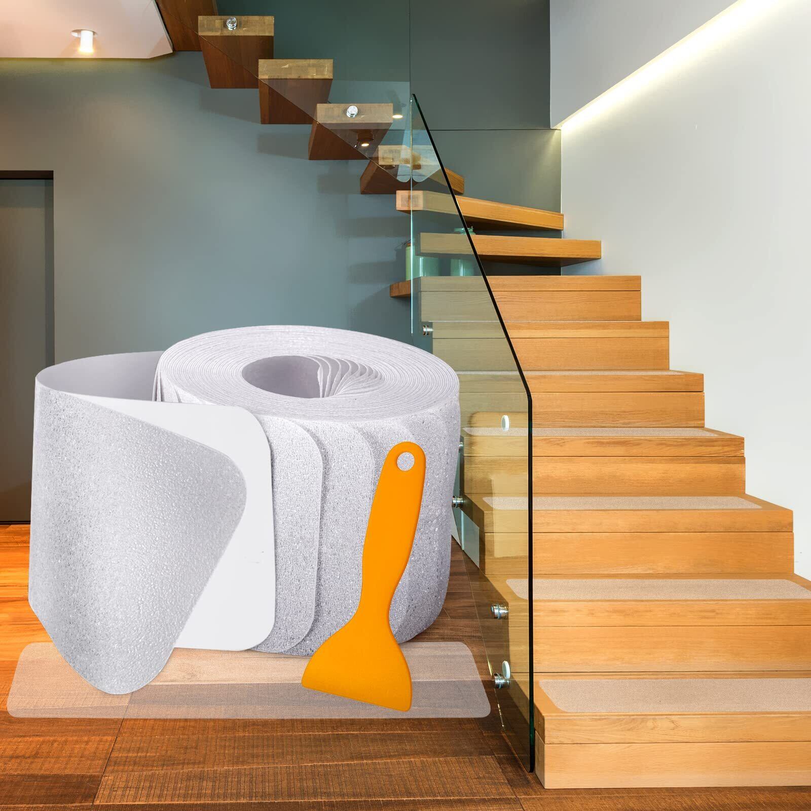 【✨ ぴったりサイズで万能対応!】:10 x 61cmのサイズにカット済みの15枚階段滑り止めテープ。木製階段、竹階段、コンクリート階段など、どんな階段にもフィットします!