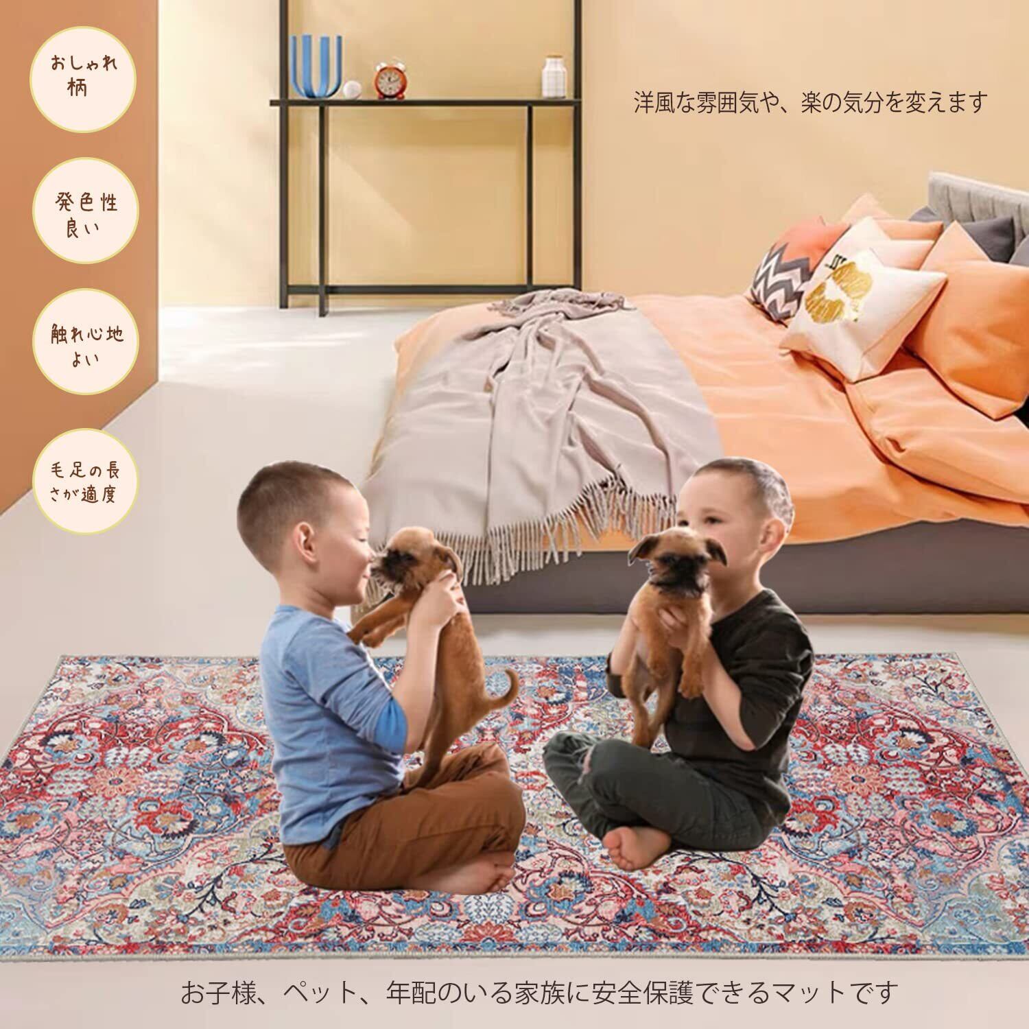 ■裏面には滑り止めがついています、滑り止めに優れ、大型犬にも大丈夫です、ズレないで安心できます。表面は柔らかい、毛足は短くて汚れやほこりは繊維の深さに落ち着くことができません、楽に掃除ですます。