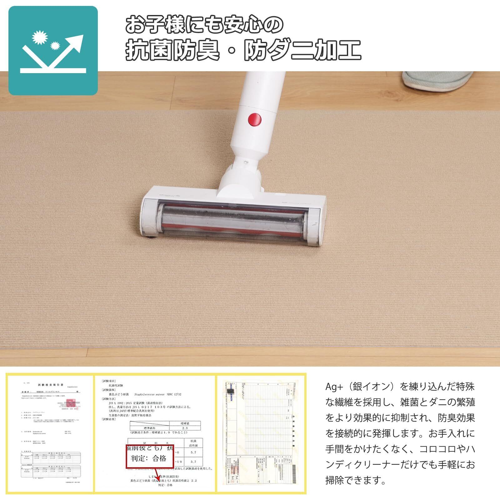 「洗える・繰り返し使え」裏面は特殊吸着加工、床に敷くだけでピタッとズレない。簡単に外せて、何度でも敷き直し可能。掃除機をかけても吸い上がらないので、お掃除がラクラク。普段のお掃除はコロコロで十分にキレイにできます。長期使用後はシャワーヘッドや高圧洗浄機などで汚れが落とせ、手洗いできていつでも清潔!
