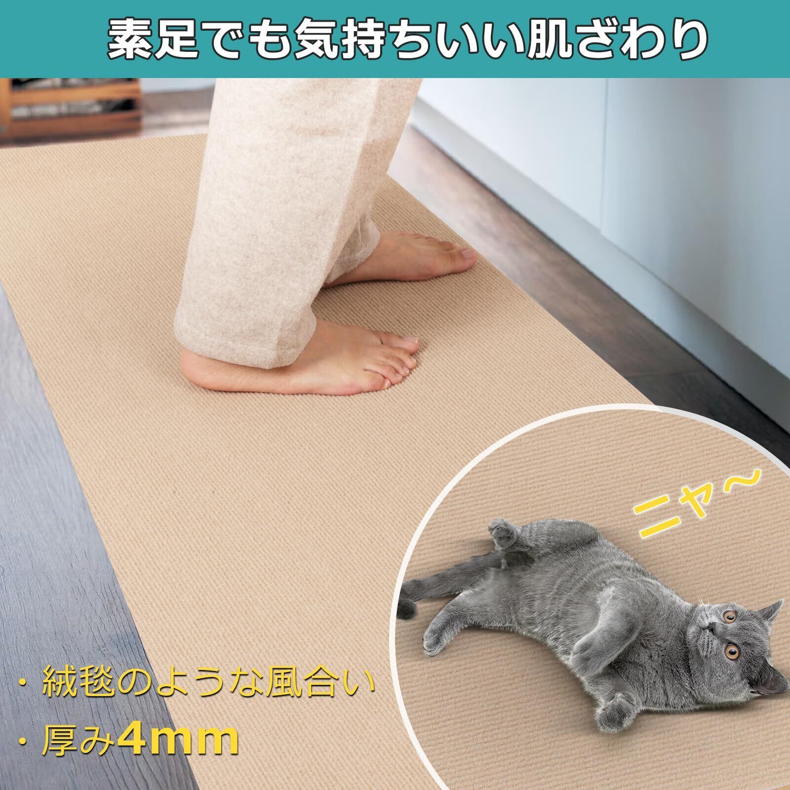 「滑り止め・ペット対応」滑りやすいフローリングで安心!廊下やリビングなど、毎日歩く場所に敷くだけで、爪を立てて歩けるため、関節や足腰への負担を軽減します。爪が引っかかりにくい素材を採用し、走り回ってもめくれず、つまずきにくいため安全!お子様やペット、シニアの方がいるご家庭にやさしい!