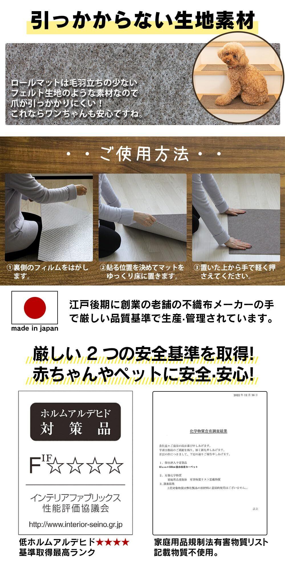 日本製 カットできる 吸着&撥水ロールマット 60×500cm 薄手4mm 滑り止めマット カーペット ロング フロアマット 廊下マット 低ホルムアルデヒド (ブラウン)