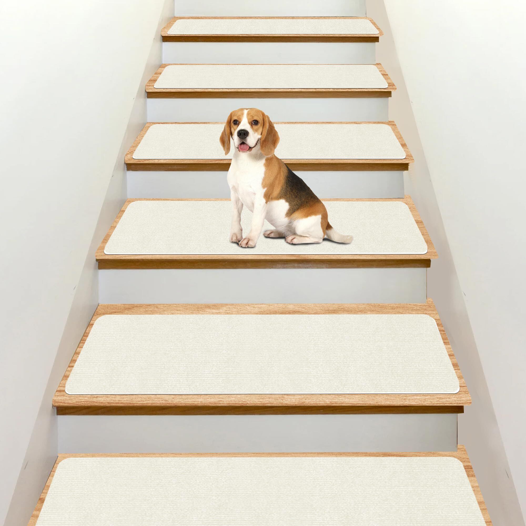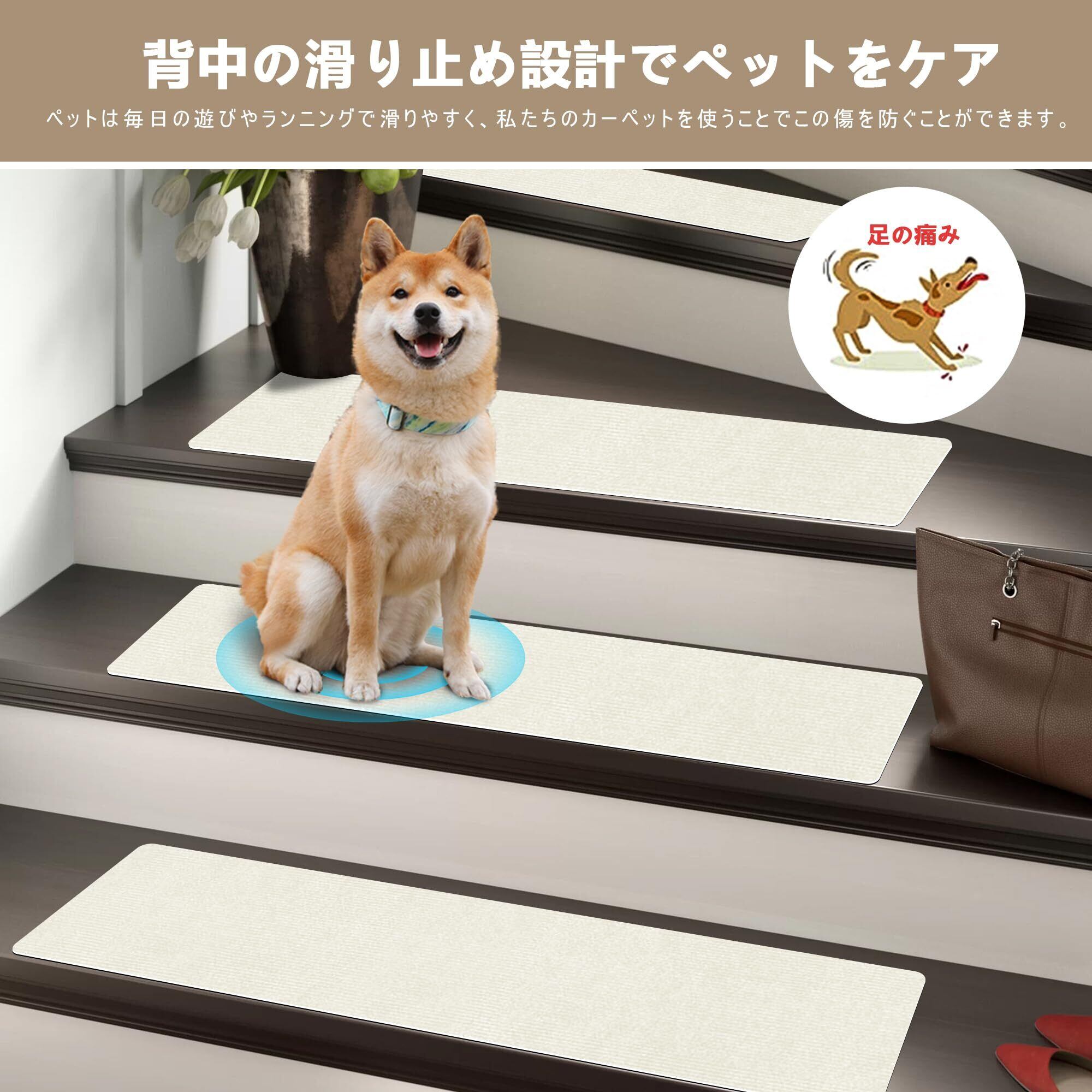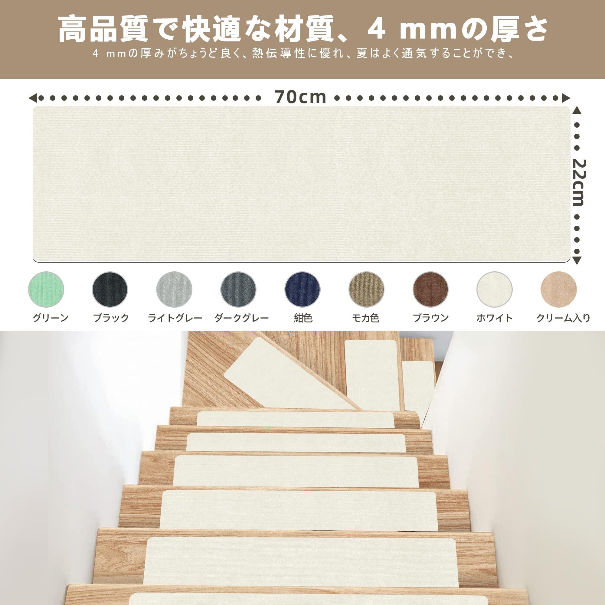 廊下敷き・階段マットUOUOMI 階段滑り止めマット厚さ4 mm、滑り止め階段マット床傷防止階段 マット取付簡単便利洗浄厚さ適度騒音低減床 保護 マット機械洗浄可能簡単スタイリッシュ裁断便利防音マット繰り返し吸着不変位(クリームホワイト), UUM-LTD15