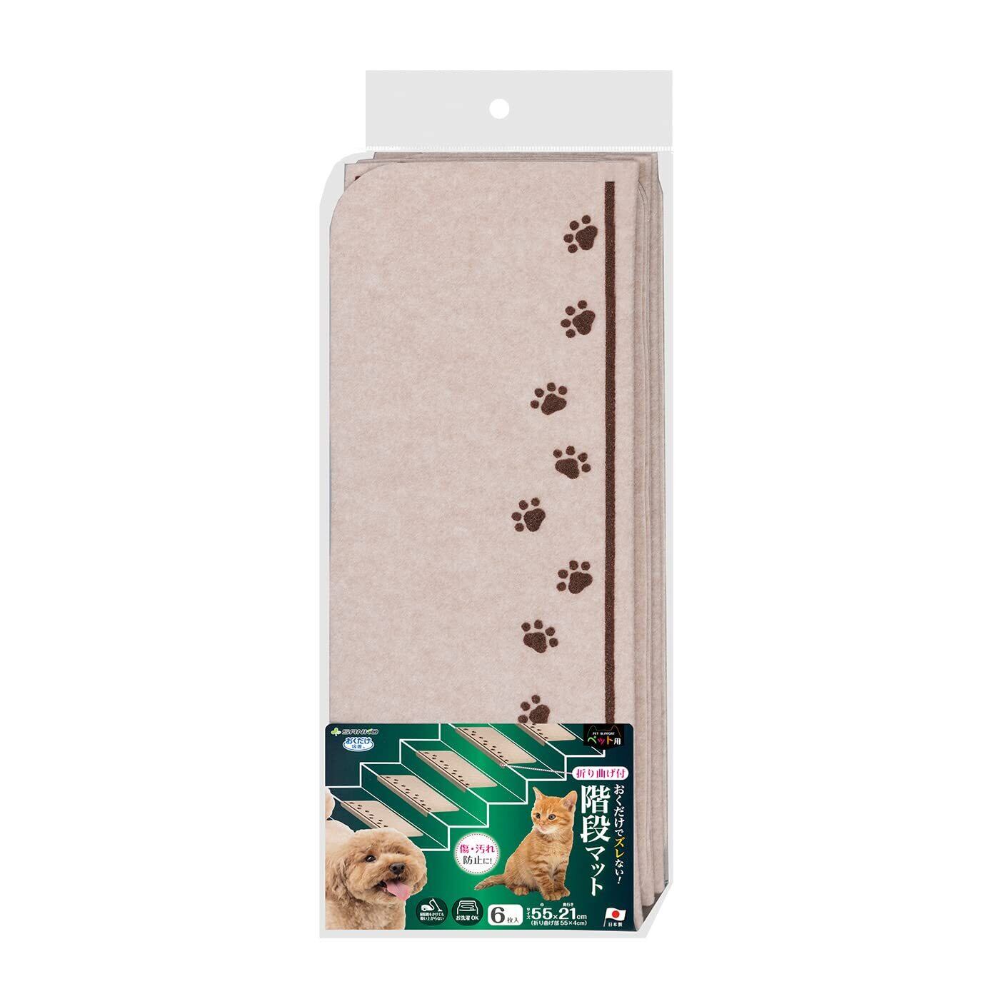 サンコー おくだけ吸着 獣医師推奨 階段マット 肉球 6枚入 ライトベージュ 55×21cm(折り曲げ55×4cm) 犬 猫 ズレない KX-43