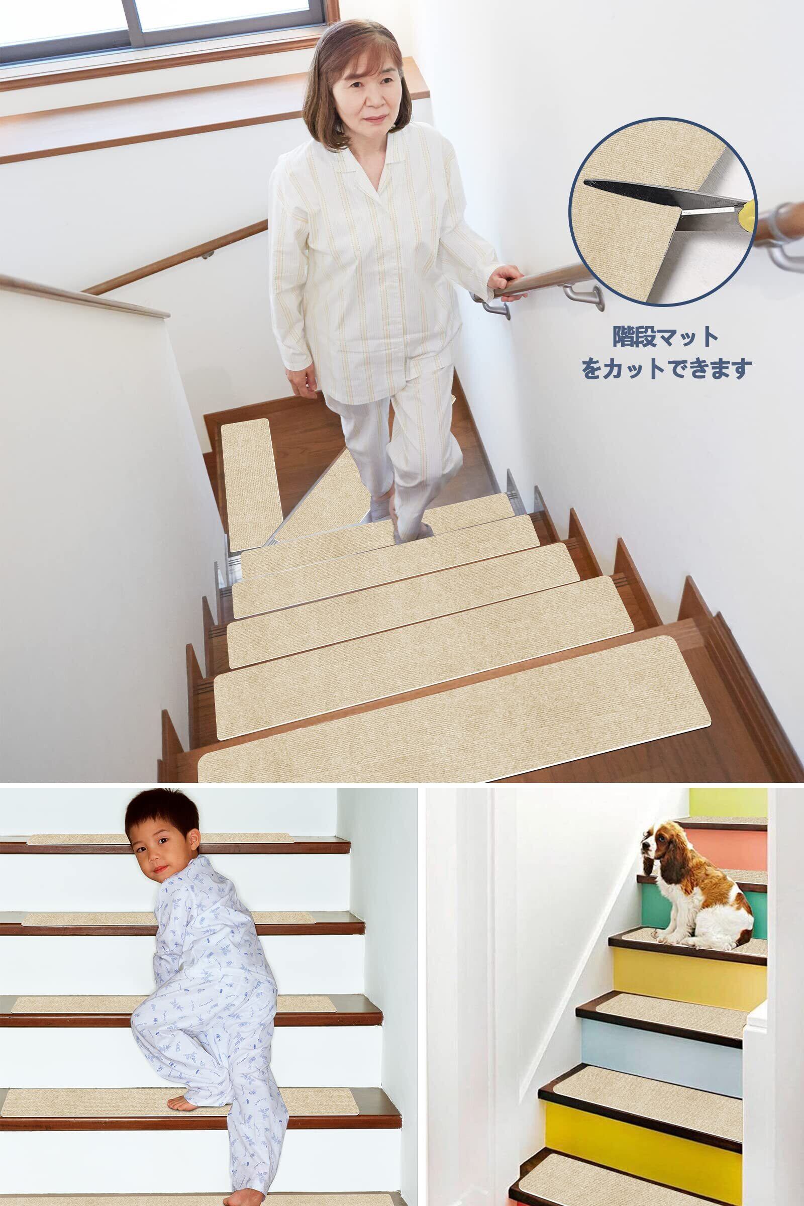 ●【消音 マット · ペットにやさしい】愛犬が階段降りるとき、滑りやすく、関節が傷つき、粘着力が高く適度な厚みの滑り止めパッドです。滑り止めには最高です,簡単に取り付け。階段用 防音マット表面はやわらかいポリエステル繊維でできており、足に優しいです。 裏面はしっかりと密着し、吸音性に優れたポリエステル素材で、 階段を上り下りする際の騒音対策や衝撃を軽減します。
