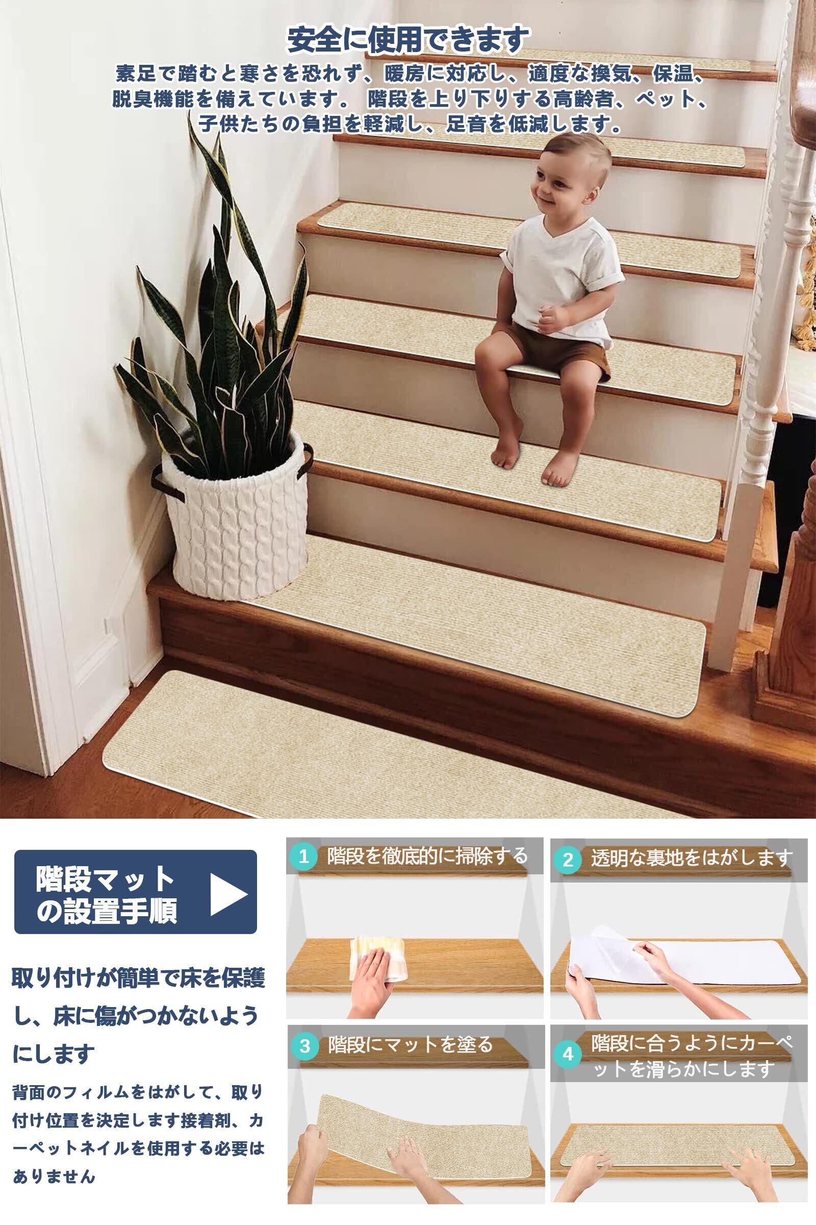 【特価セール】階段マット 滑り止めHUIJIE 階段カーペット 吸着 厚み4mm 階段敷き 足腰負担軽減 ズレない 階段用 ステップマット ワイド 階段クッション 床保護 転倒防止 キズ防止 猫犬階段滑り止めマット 子供や高齢者 ペットなどの安全対策に 床暖房対応