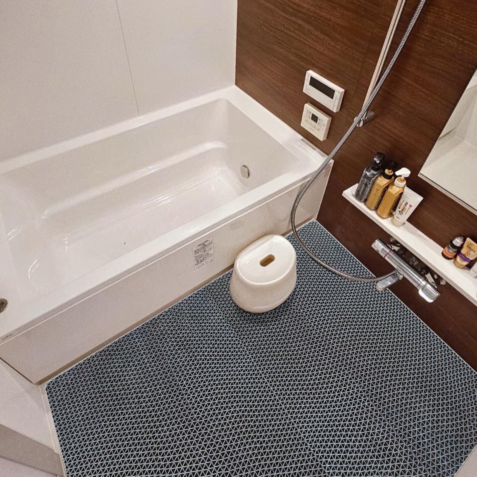 【優れた排水性能】:この滑り止めマットは全面に排水構造を備え、メッシュの透水設計により迅速に水を排出し、足元に「水膜」ができるのを防ぎます。滑りやすさによる事故のリスクを大幅に低減します。柔らかい環境に優しいゴム素材により汚れが付きにくく、水洗いや軽く布で拭くだけで簡単に清潔さを保て、日常の掃除がより簡単になります
