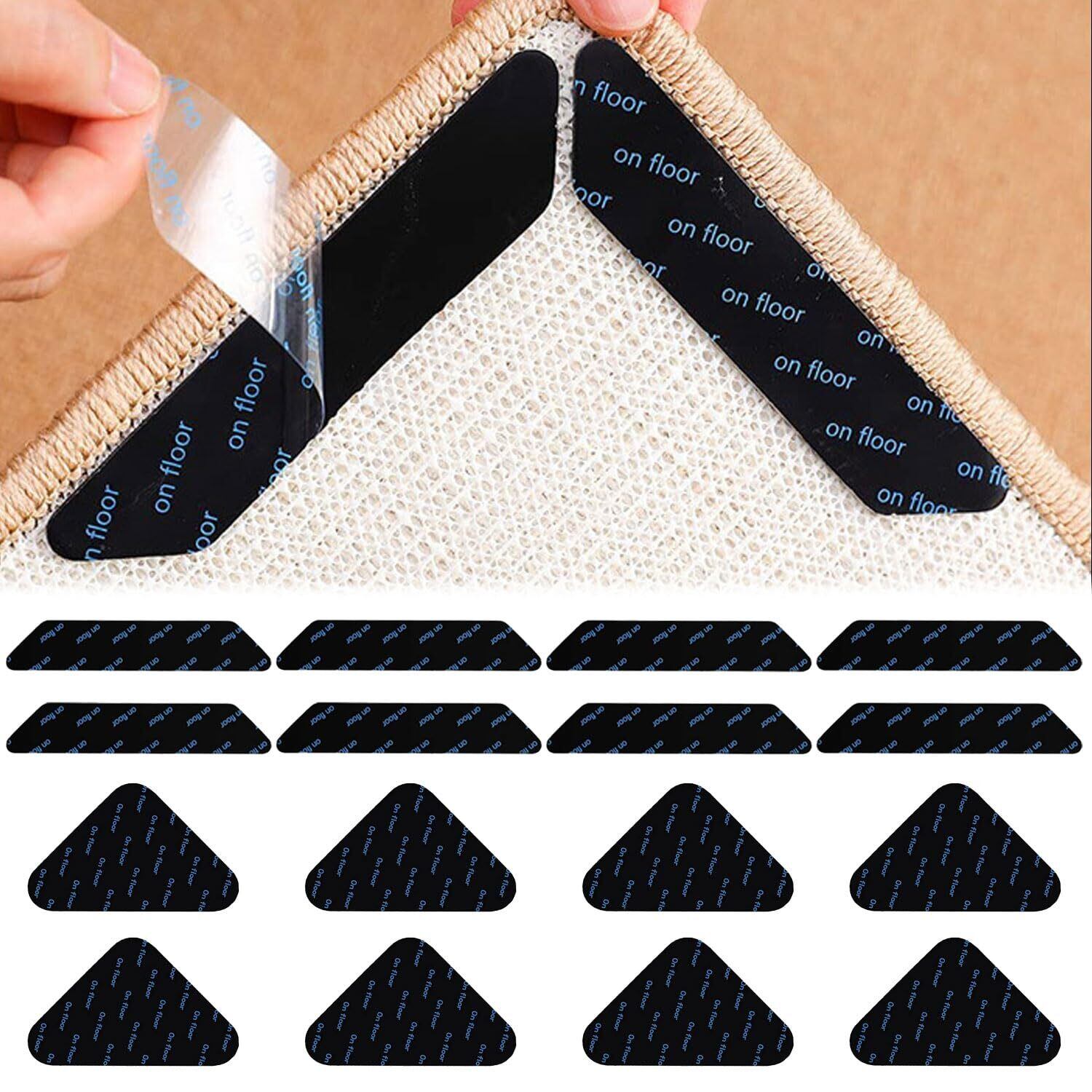 滑り止めシート 16枚 超強力 カーペット 滑り止めシート ネットプラスソリッド 跡が残らない 洗濯後粘度が回復 カーペットパッド滑り止めテープ カーペット マット ラグ ソファーなど様々なものに対応(三角形90*90mm x 8 + 台形30*180mm x 8)