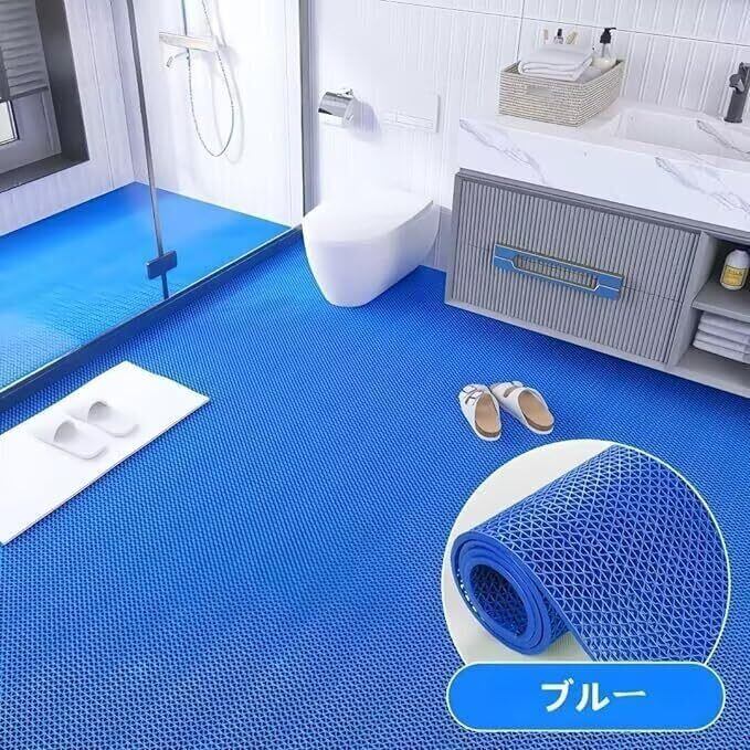 PANCY 業務用滑り止めマット PVC ゴムマット 歩行滑り止めマット 厚さ4.5mm 透水マット 穴あき 風呂マット プール下マット 玄関マット 滑り止めマット 屋外 抗菌 速乾 自由DIY 赤ちゃん 高齢者 転倒防止 介護用品 業務用 家庭用 工業用 車用 商業 吸水 屋内 通路 廊下 プール 浴室 ベランダ 病院 介護 学校 店舗 マンション 駐車場 (ブルー, 1.2X5M)