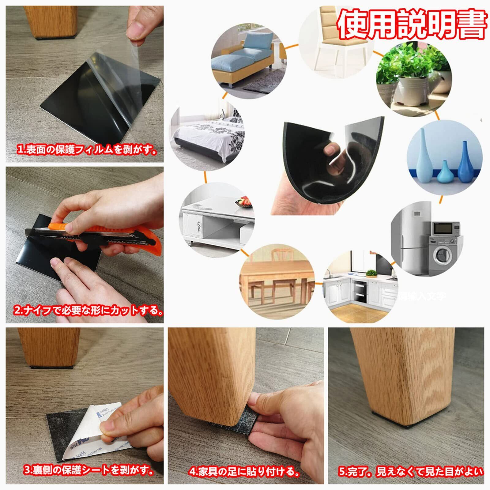 滑り止めシート 家具固定 地震対策 天然シリカゲル 自由カット 防振防音 耐熱耐水 ハードフロア対応 10×8cm 4 枚入り ブラック