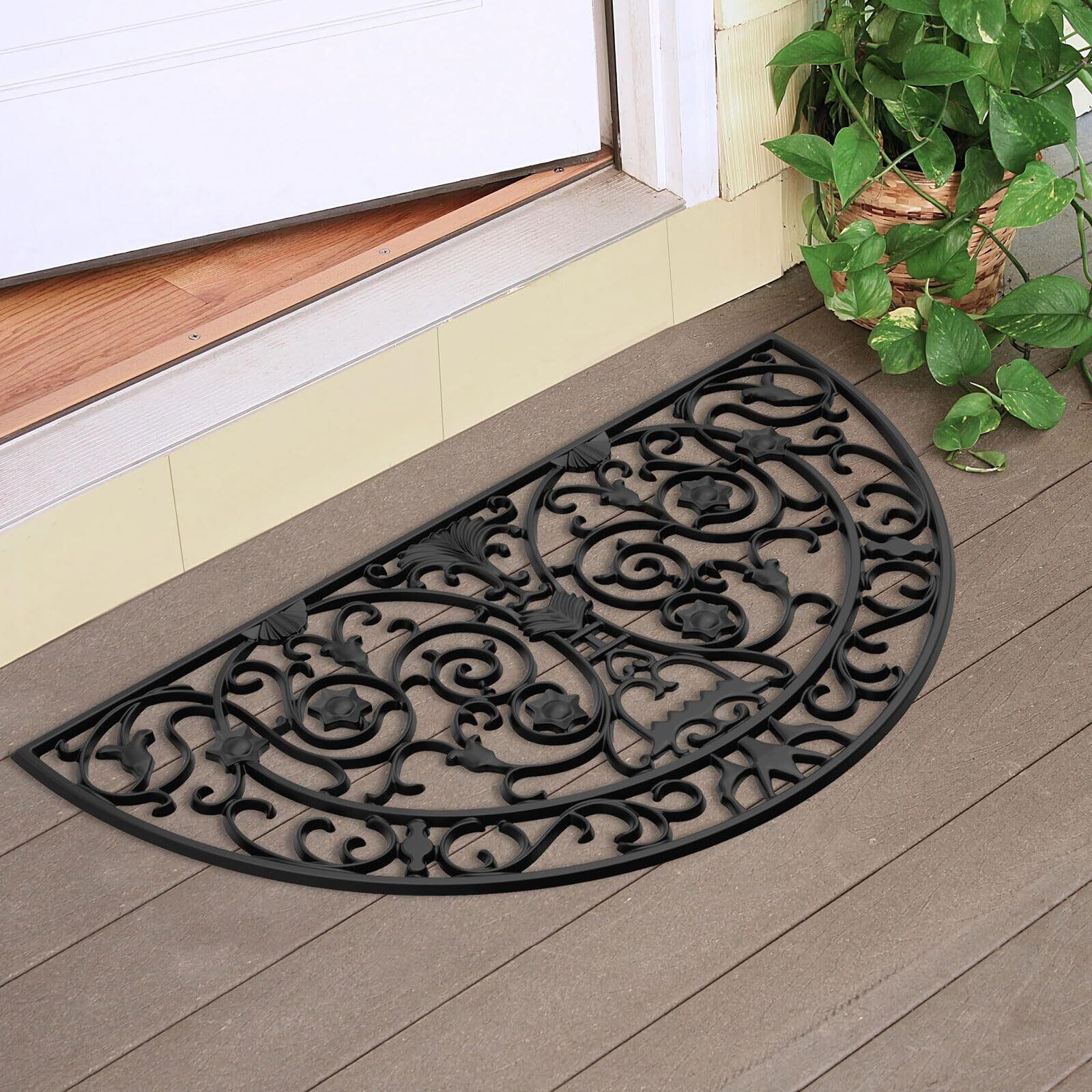 【新春セール】玄関マット 屋外 泥落とし エントランスラバーマット おしゃれ 洗いやすい (ブラック朝顔柄, 750*390mm)
