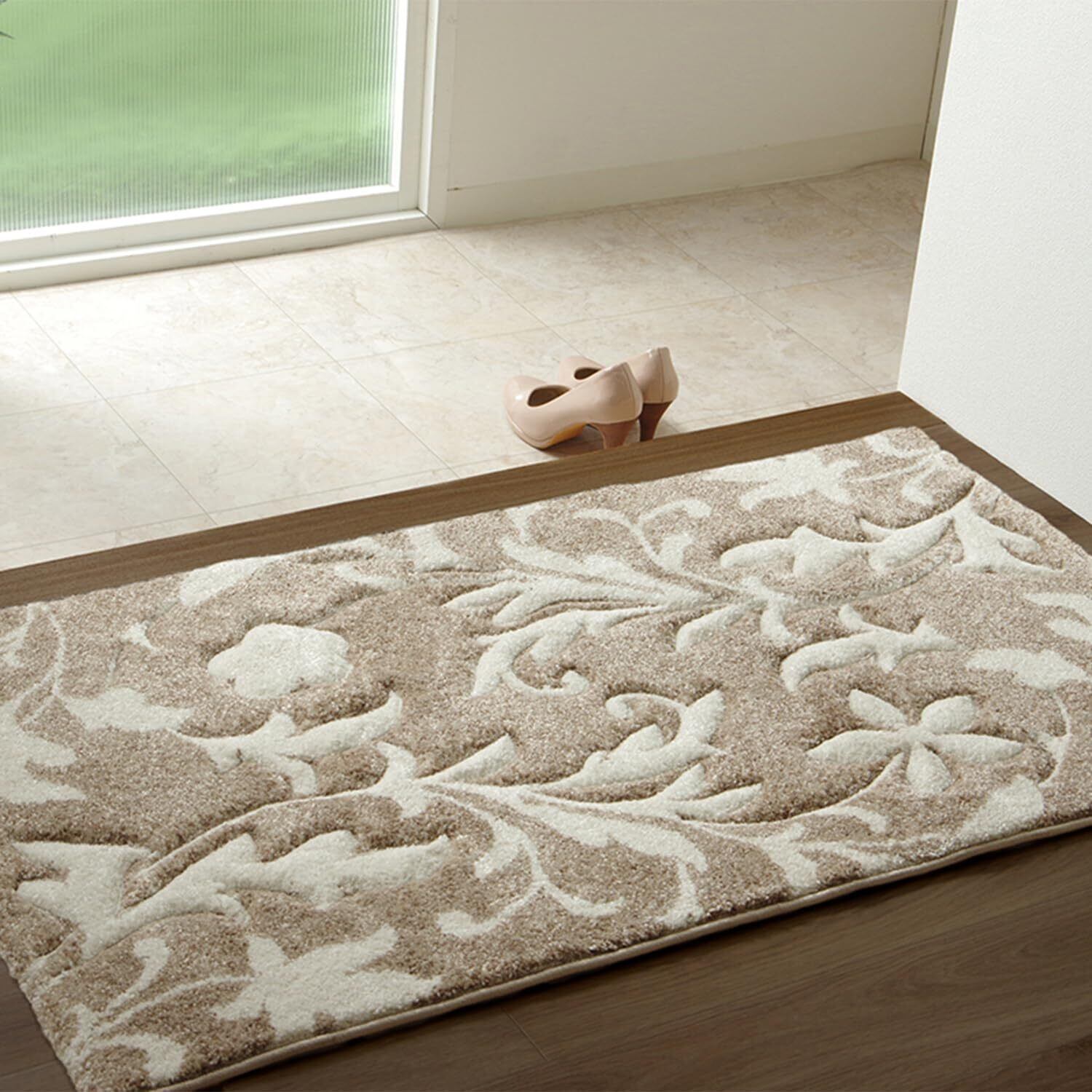 イケヒコ 玄関 選べる マット ラグ ウィルトン 単品 ネム ベージュ 約50×80cm 厚み 約15mm トルコ製 へたりにくい 耐久性 弾力性 抗菌防臭 消臭 エレガント カービング 加工 洗濯不可 おしゃれ ふわふわ #1311320021701