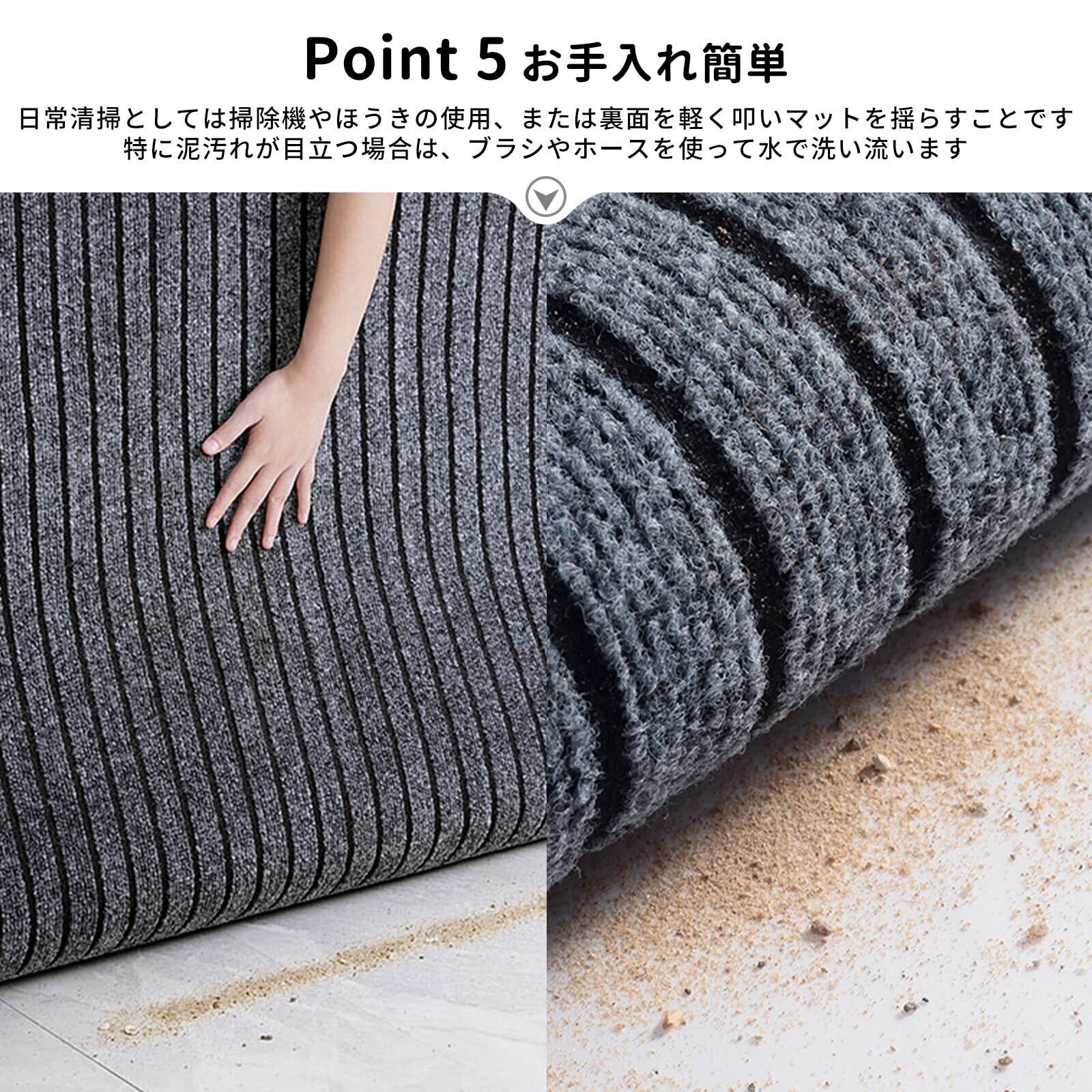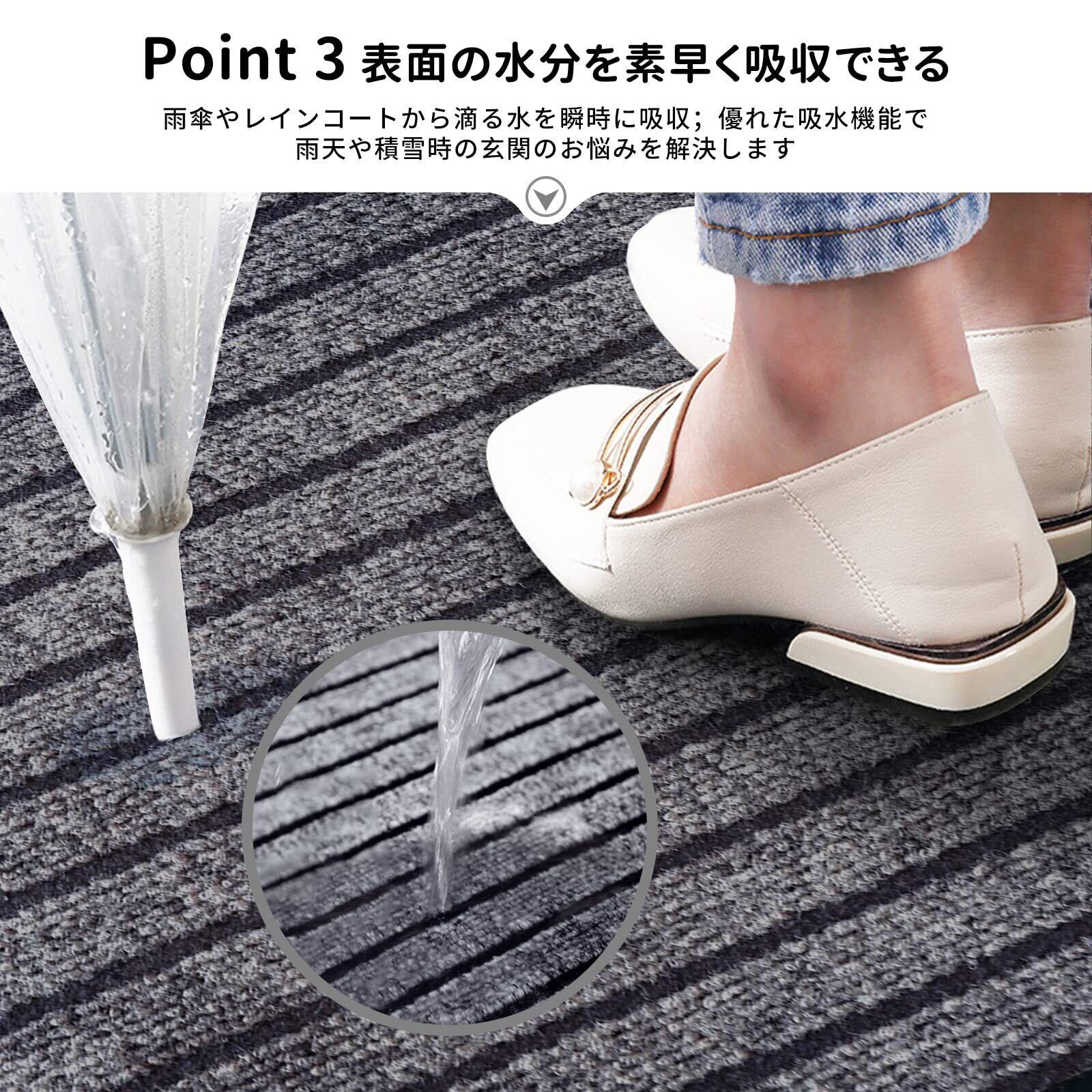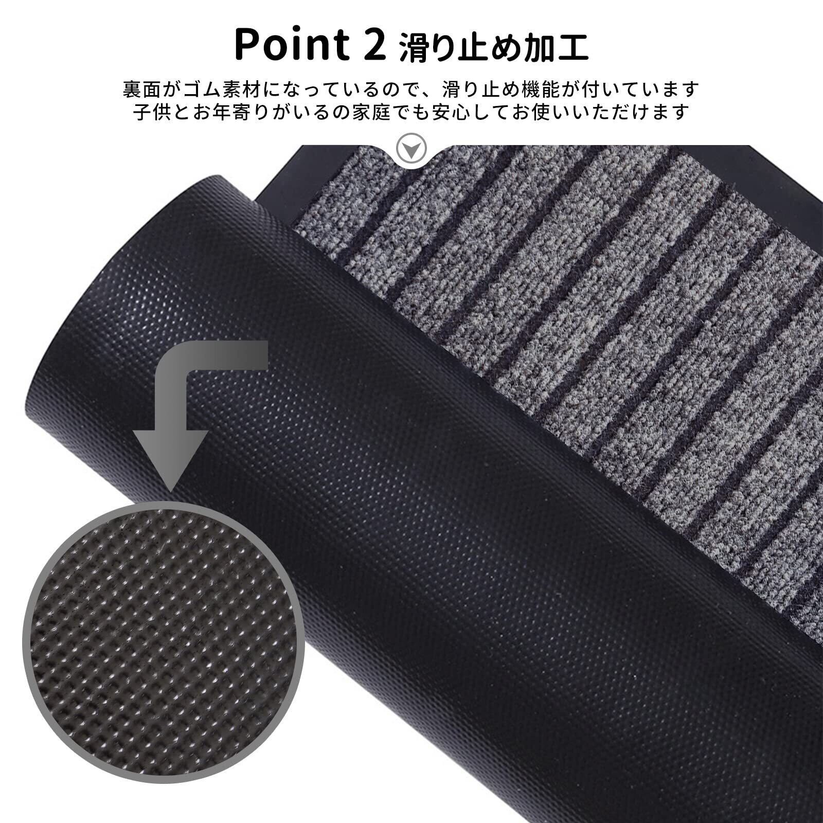 【耐磨性抜群&滑り止めマット】玄関マットは表面ポリプロピレン繊維な高品質材料で作られて、優れた強度と耐摩耗性を持っています。裏面にはしっかりと滑り止め加工が施されますので、マットのズレを防ぎます!子供とお年寄りがいるの家庭でも安心してお使いいただけます。
