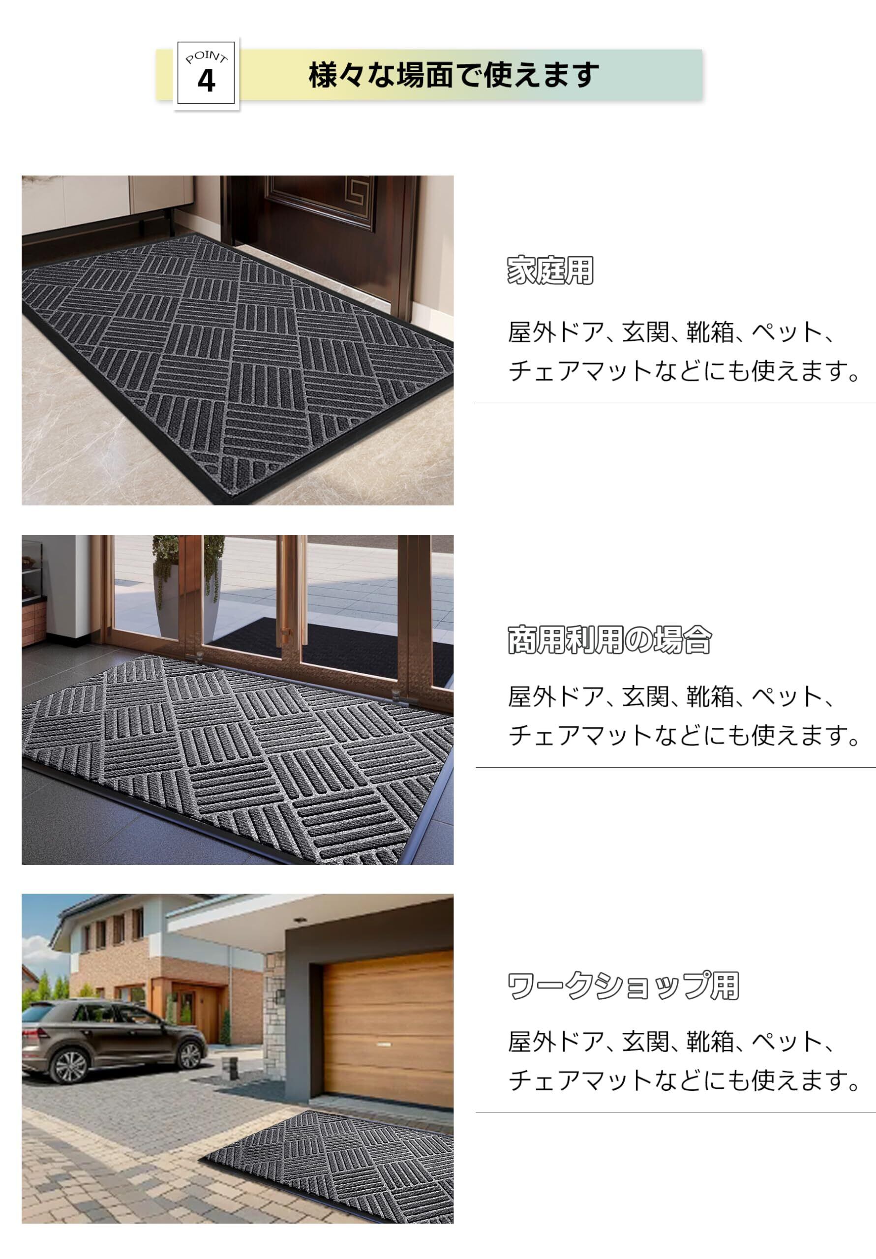 【幅広い用途】多目的に使えるマットです!玄関マットやエントランスマット、キッチンマットなどの室内マットなど様々な用途でご使用いただけます。飲食店、美容院、ビジネス、オフィス、会社、ビル、学校、幼稚園、保育園、店舗、病院、公共施設、レジャー施設などの業務用にも最適です。