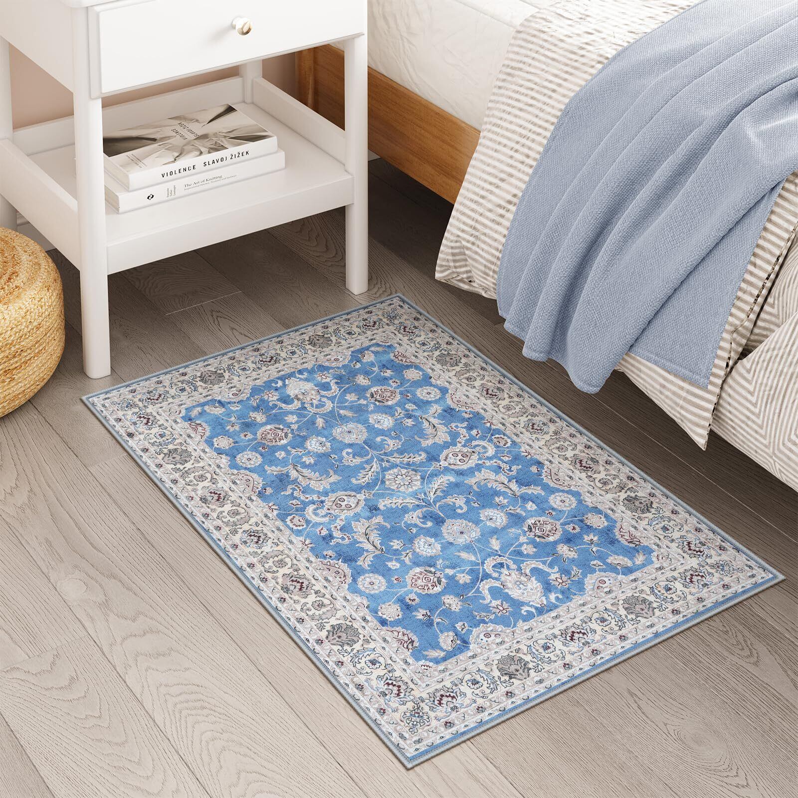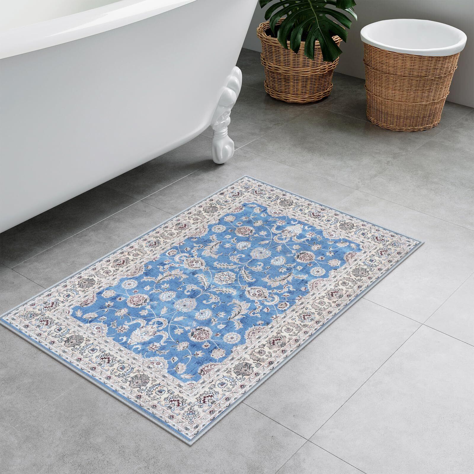 HAOCOO 玄関マット ペルシャ絨毯風 室内 50х80cm 小さい ラグ おしゃれ 洗える 長方形 耐磨耗性 滑り止め 防音 ラグマット 屋外 泥落とし シェニール オールシーズン適用 抗菌防臭 軽量 ライトブルー