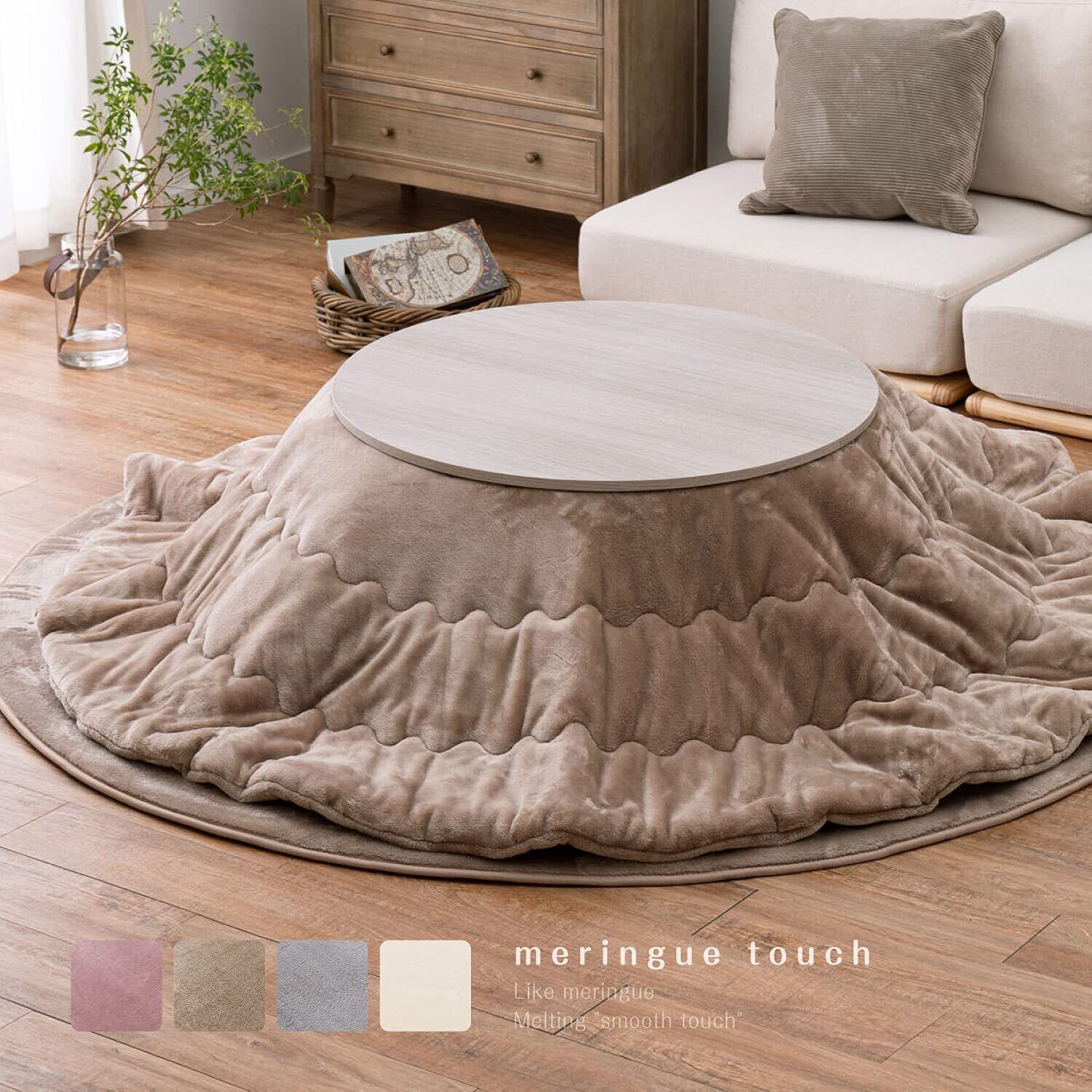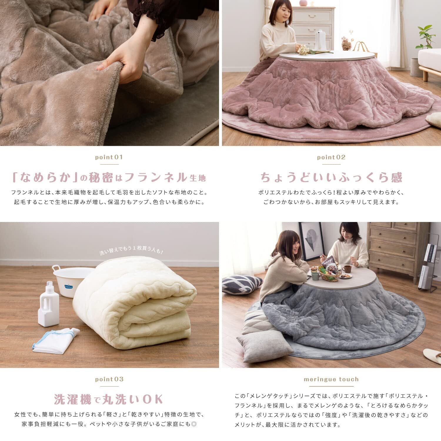 萩原 こたつ布団 アイボリー 直径約190cm 洗濯機OK フランネル生地 くすみカラー