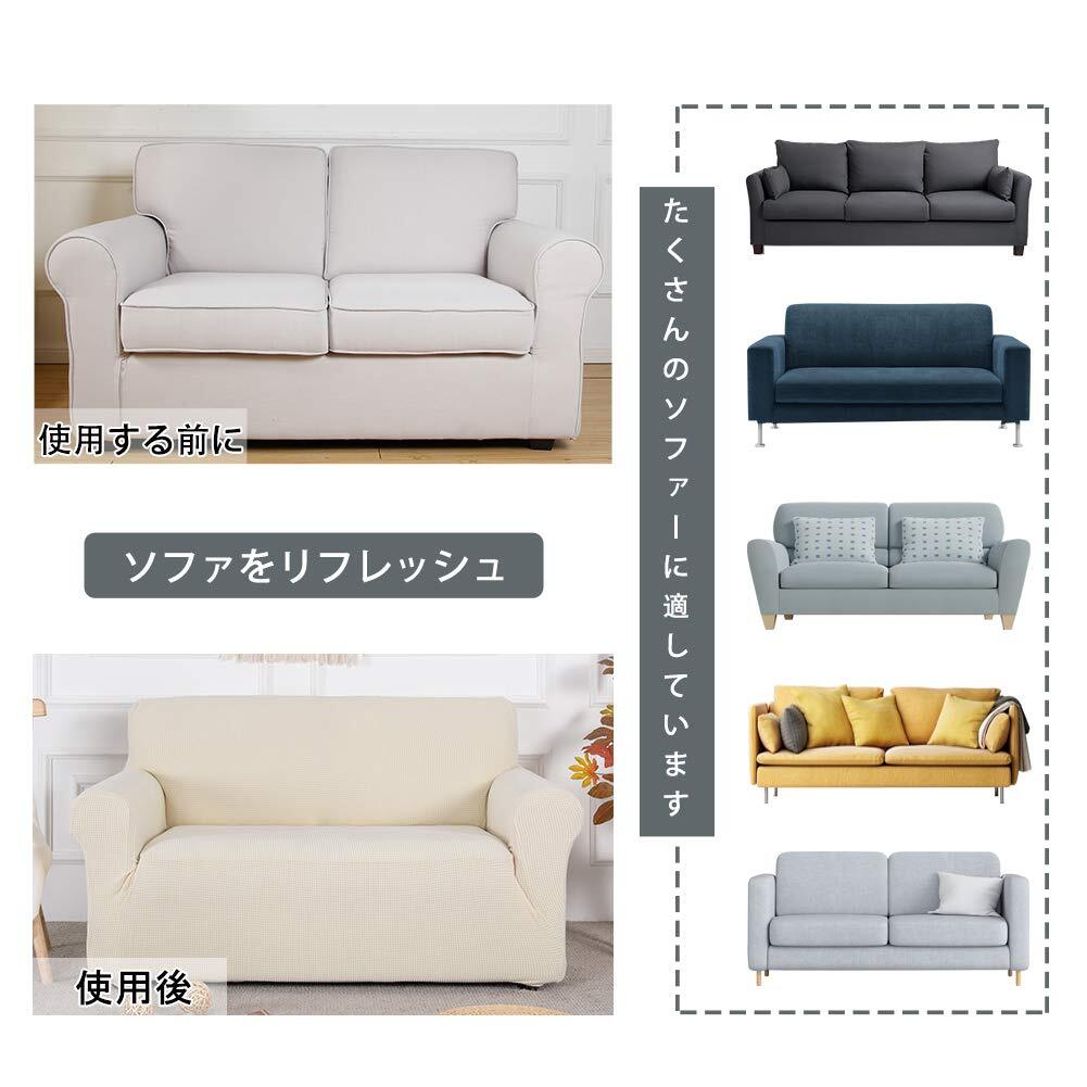 簡単着脱:ストレッチソファーカバーです。生地がグングン伸びて、簡単に着脱でき、肘付きソファーなど様々なソファーに適用です。滑り止め効果あります。女性一人でも簡単に取り付け可能です。
