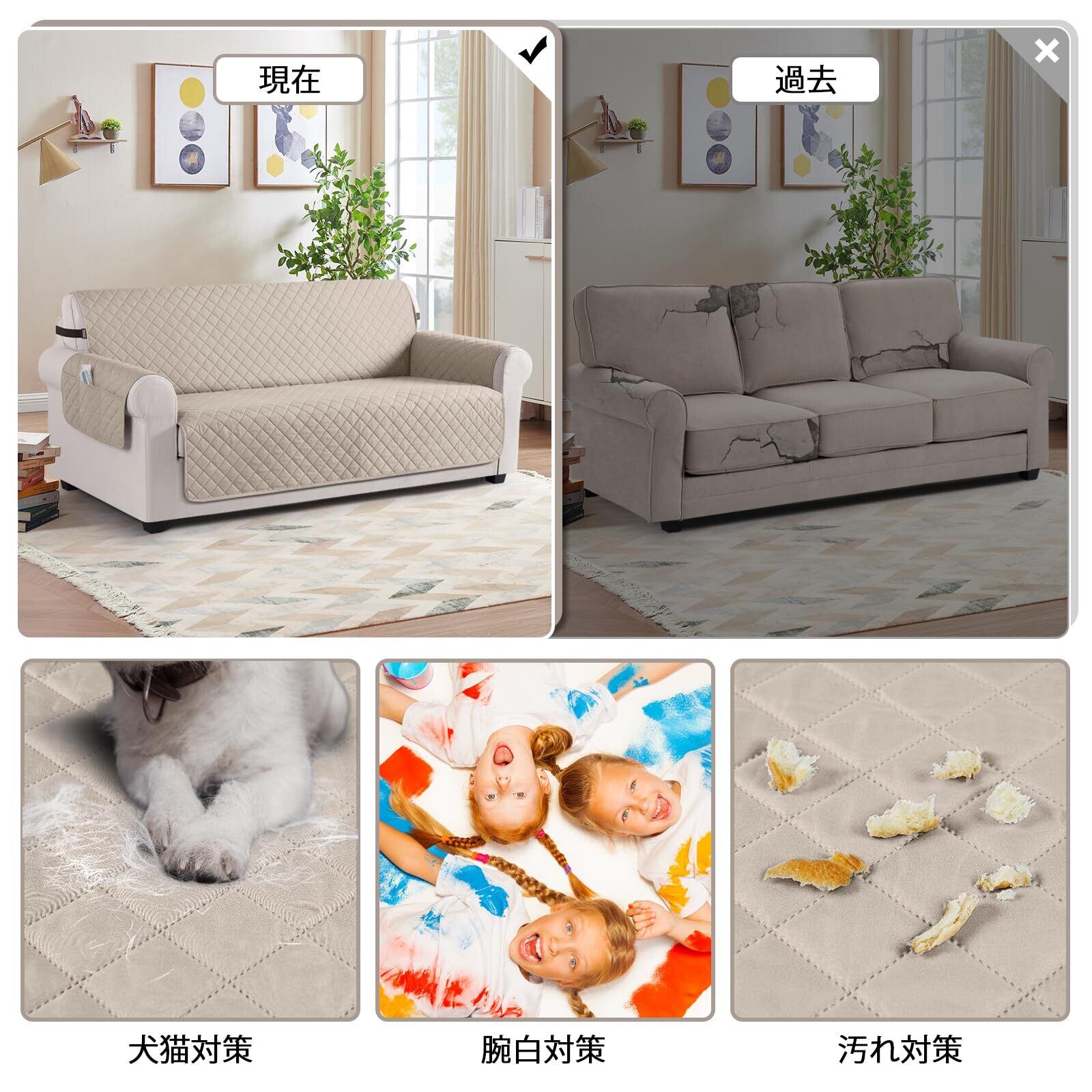 【腕白&犬猫対策】TAOCOCO 防水 ソファカバーは犬や猫がいるご家庭にぴったりで、新しいソファをペットや子供の汚れから守ります。 ソファーの背もたれに滑り止めの小粒があります、長さが調整可能のゴムバンドで、ソファを簡単に固定できます、マルチサイズにも適用します。 お子様やペットのいるご家庭に適用で、快適な体験をお届けします。