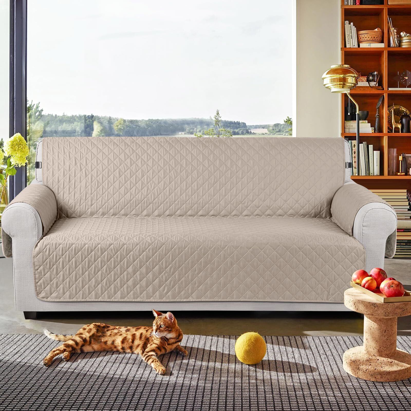 【在庫処分】TAOCOCO ソファカバー 全面防水 ソファーシート 犬猫対策 毛髪不粘着 滑り止め 1人2人3人掛け 肘付き 替えソファカバー 防塵 汚れ防止 傷防止 爪とぎ防止 マルチカバー 四季適用 撥水加工 丸洗い可能 (カーキ, 3人掛け)