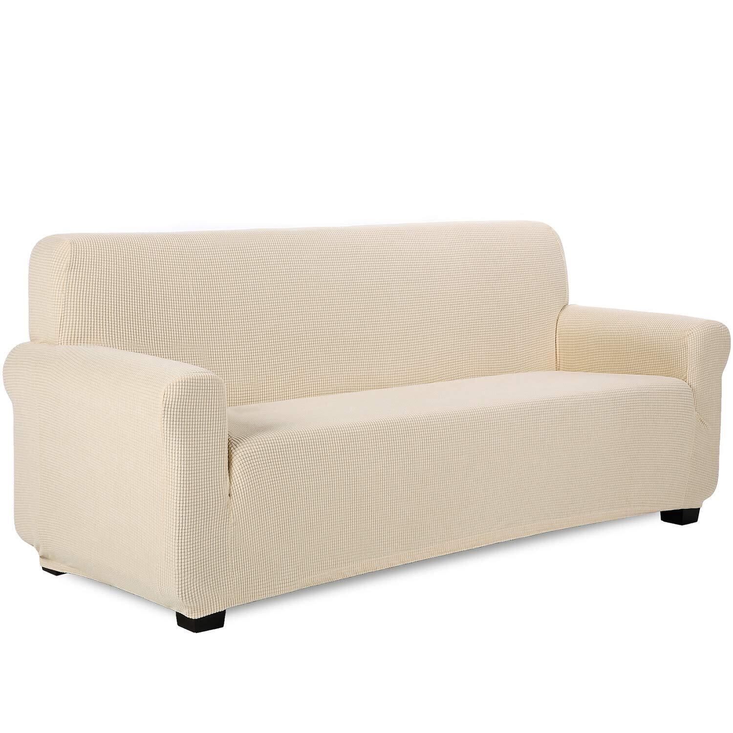 TIANSHU ソファーカバー 3人掛け 肘付き マルチカバー 北欧 無地 おしゃれ ストレッチ フィットタイプ 通気性 耐久性 滑り止め 柔らかい 伸縮素材 伸び良く 犬猫対策 防塵 防汚 四季適用 インテリア 新生活 超便利 (ベージュ)