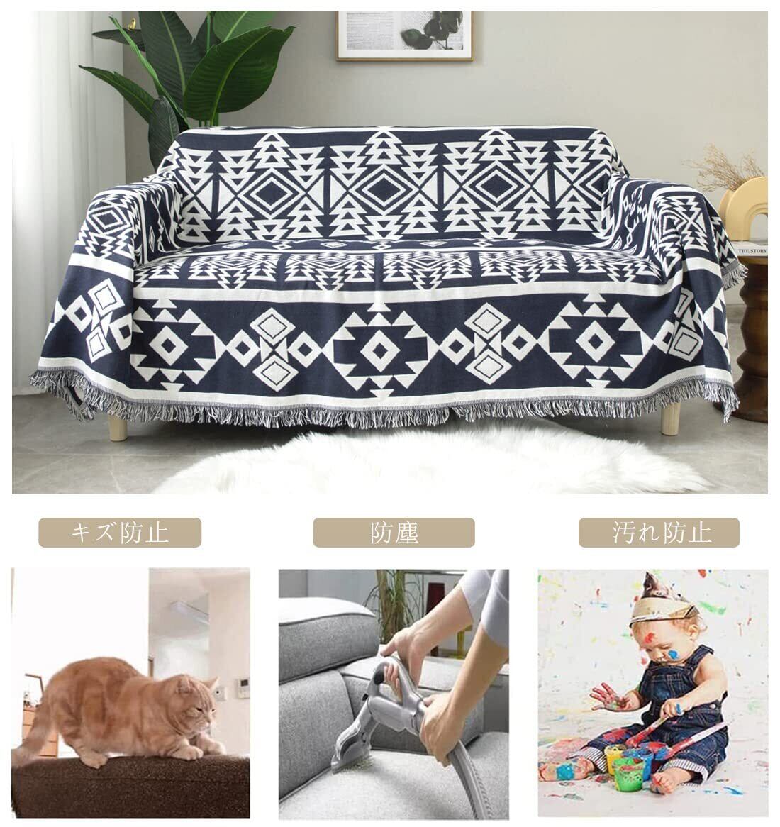 【広い使用範囲】マルチカバー、ソファカバー、ソファ毛布、ソファタオル、ダブルソファー、シングルソファー、寝椅子、出窓。防塵カーペット、キャンプカーペット、旅行毛布なども使えます。|素材:綿+ポリエステル|