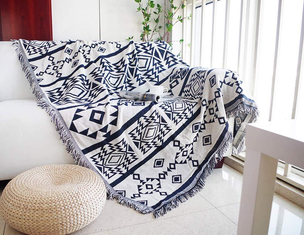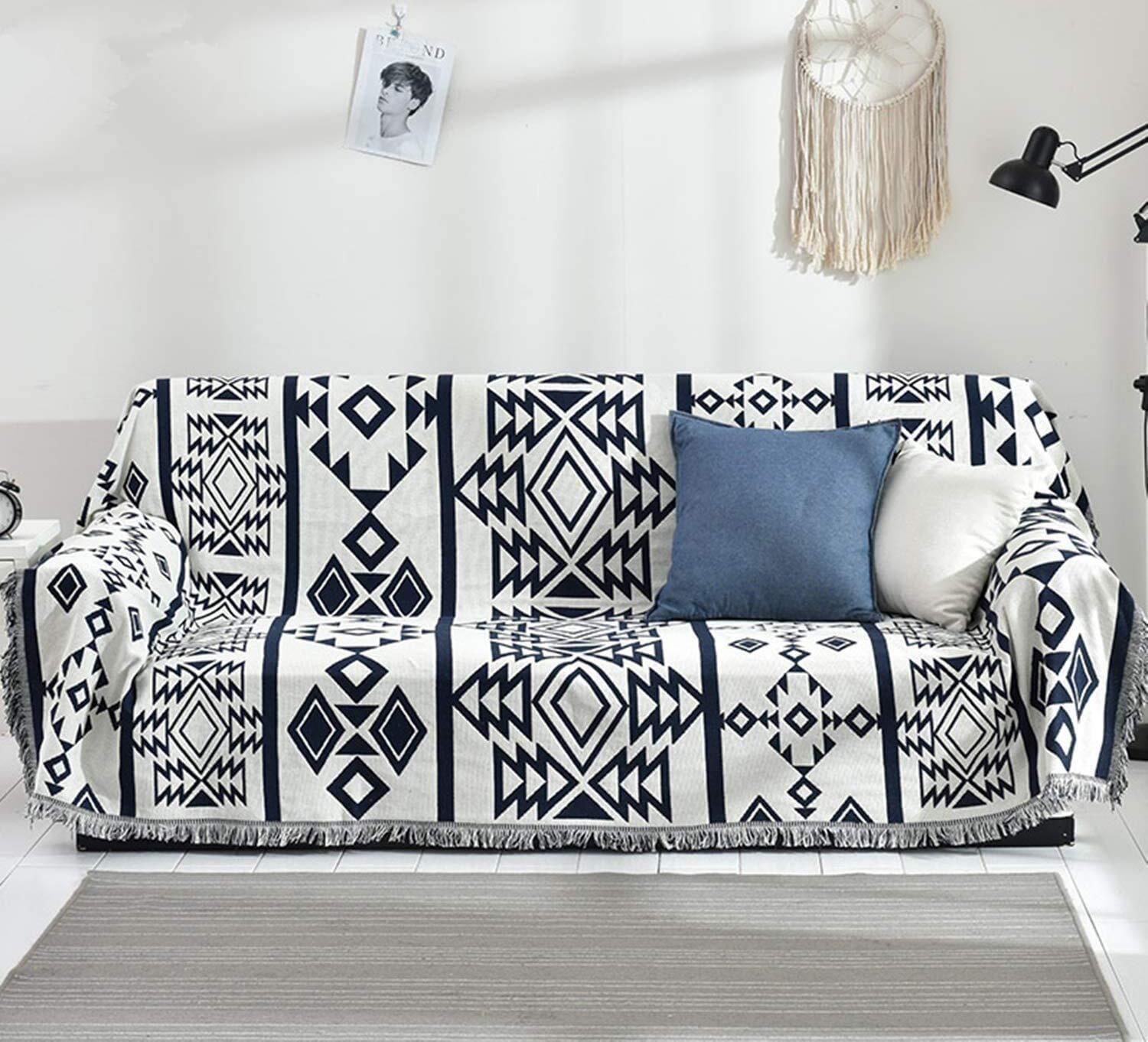 北欧風 マルチカバー 長方形 ソファーカバー 多機能 ブランケット マルチカバー ソファ ベッドカバー フリンジ付き 綿 1人掛け 2人掛け カウチ ベッドカバー 毛布 テーブルクロス テーブル掛け枚 おしゃれ 両面使える 水洗い 四季通用(130*180cm)