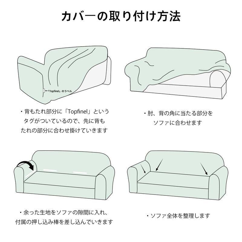 一人でも簡単に取り付け:下側には一周する幅広ゴムがついており、伸縮性、耐久性、滑り止め効果に優れています。背面両側にはラベルが付いていて、取付時に前後の向きを簡単に確認できます。ソファを持ち上げる必要がないので、女性一人でも簡単に取り付けが可能です!簡単に取り外して洗えるので、ソファをいつも清潔に保てます。
