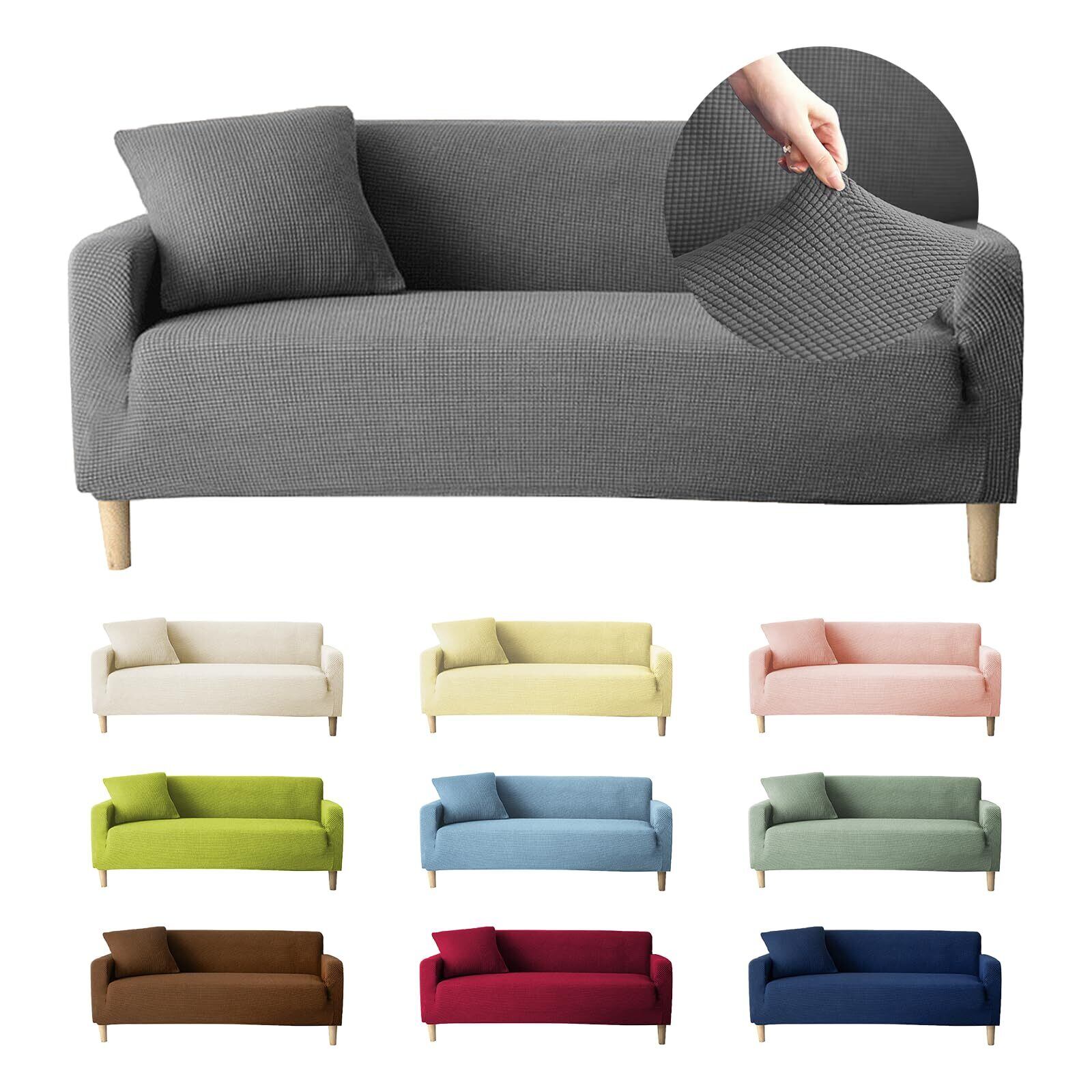 ソファーカバー マルチカバー クッションカバー付き 洗える 伸びる 3人掛け ソファ 保護カバー ストレッチタ 肘付き 北欧 ソファーベッド 椅子 カバー 取り付け簡単 ソファーシート おしゃれ ワッフル生地 滑り止め 通気性 汚れ防止 爪とぎ防止 四季兼用 防塵(グレー)-L