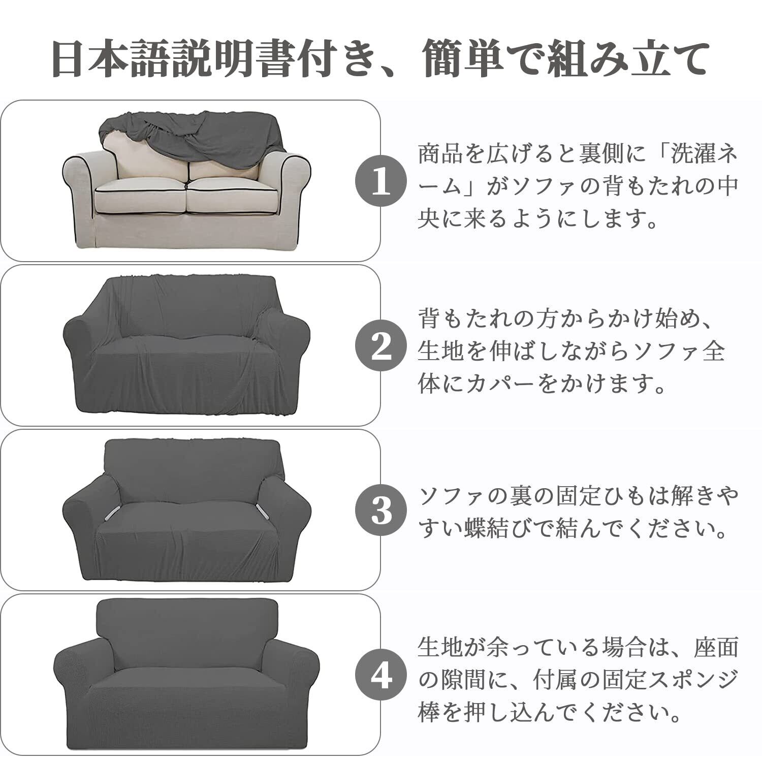 【数量限定】ソファーカバー マルチカバー クッションカバー付き 洗える 伸びる 3人掛け ソファ 保護カバー ストレッチタ 肘付き 北欧 ソファーベッド 椅子 カバー 取り付け簡単 ソファーシート おしゃれ ワッフル生地 滑り止め 通気性 汚れ防止 爪とぎ防止 四季兼用 防塵(グレー)-L