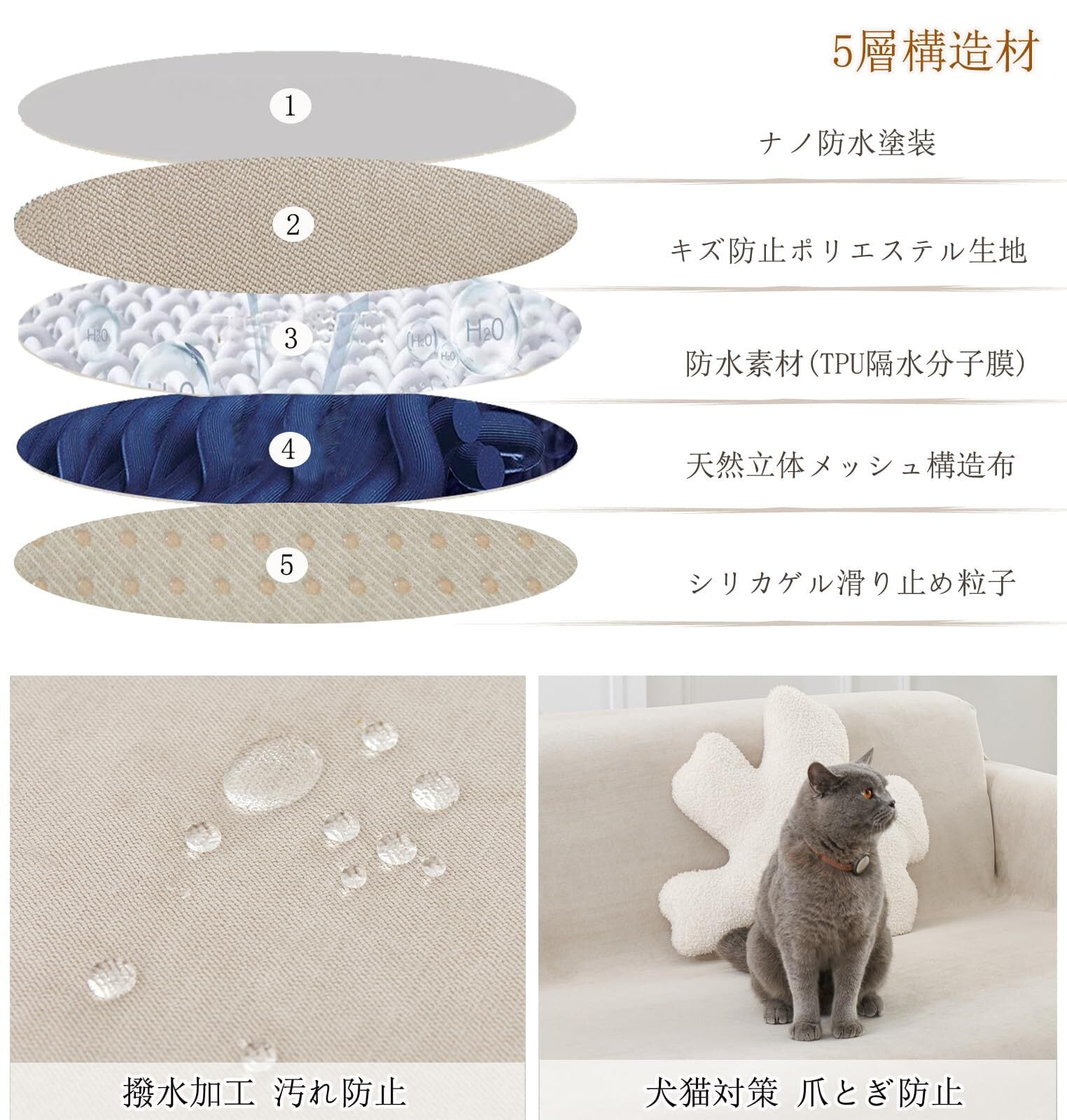 【改良版・防水機能】この5層構造材ソファカバーは表地:ナノ撥水塗装+キズ防止ポリエステル生地 中地:防水素材(TPU隔水分子膜)+天然布 裏地:シリカゲル滑り止め粒子 。普通の単層ソファカバーより防水性、耐久性、耐摩耗性が優れています。※光源と背景およびディスプレイの撮影の違いによる. 少しの色違いは避けられません。理解してほしい。しかし我々は色差を最小にするように変調する。受け取った実物の色を基準にしてください。