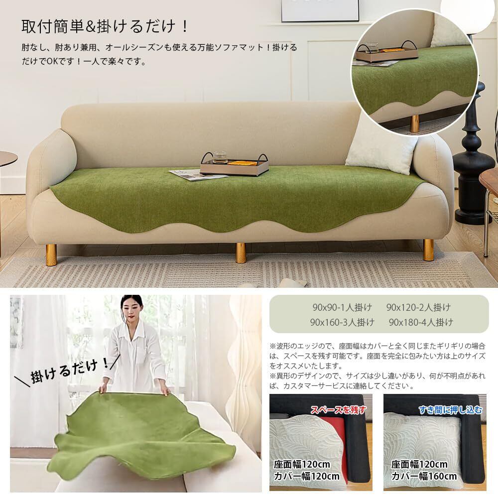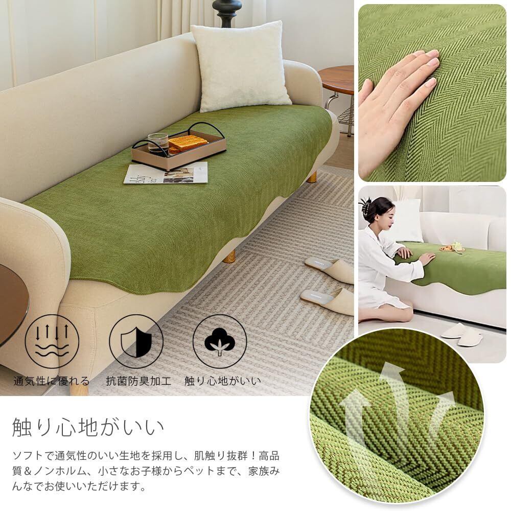 【在庫セール】ソファーカバー マルチカバー ソファパッド 肘なし 肘あり兼用 2人掛け 掛けるだけ 滑り止め 耐磨性 洗える かわいい 高級 取付簡単 通気性 傷防止 爪とぎ防止 抗菌防臭 吸汗速乾 四季兼用 ペット用(90*120 グリーン)