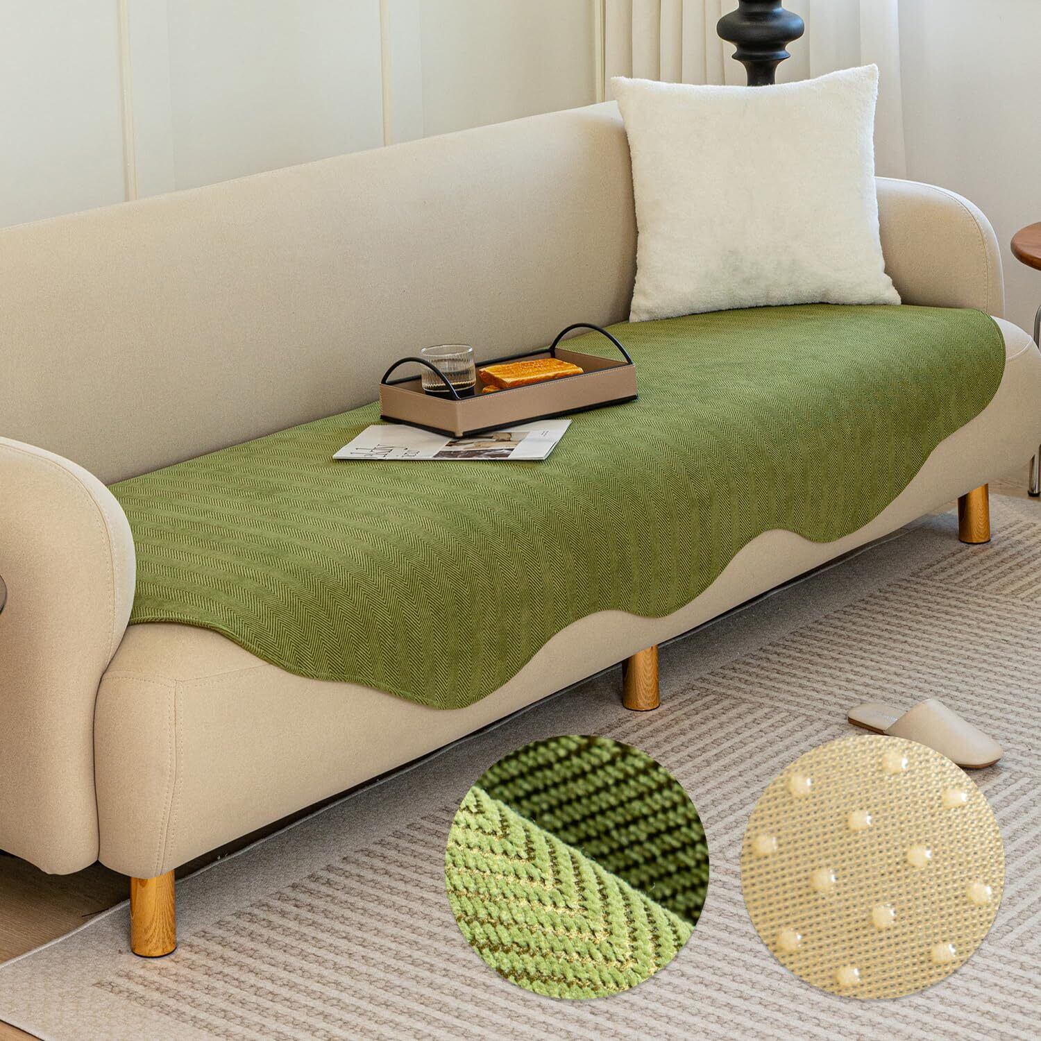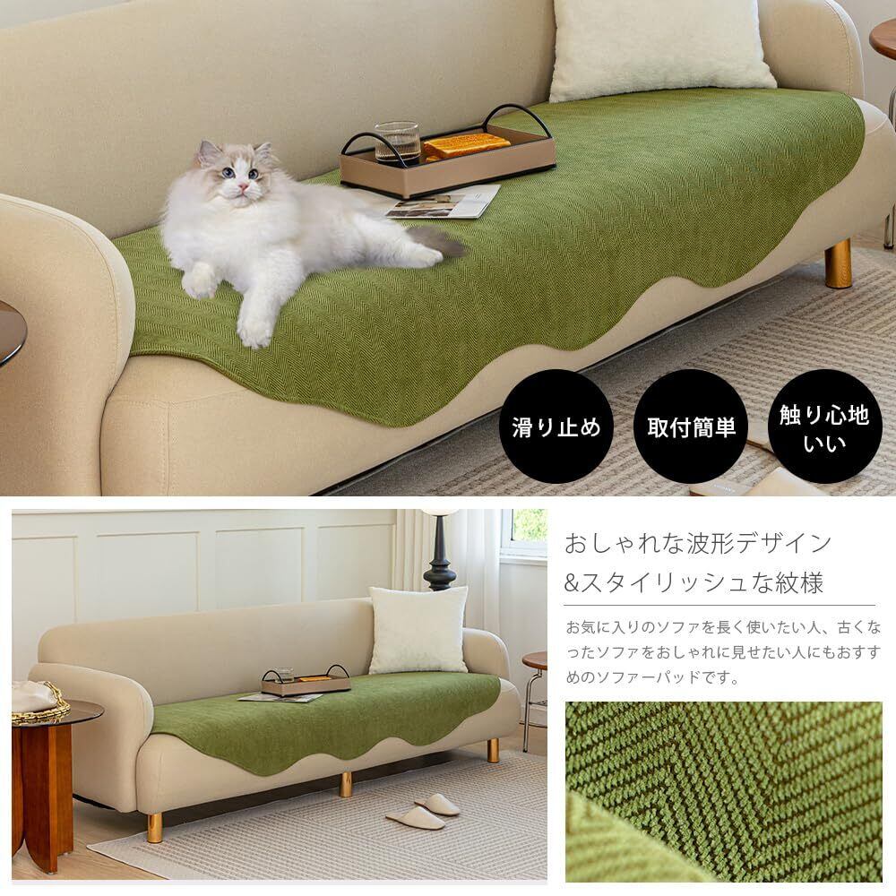 ソファーカバー マルチカバー ソファパッド 肘なし 肘あり兼用 2人掛け 掛けるだけ 滑り止め 耐磨性 洗える かわいい 高級 取付簡単 通気性 傷防止 爪とぎ防止 抗菌防臭 吸汗速乾 四季兼用 ペット用(90*120 グリーン)