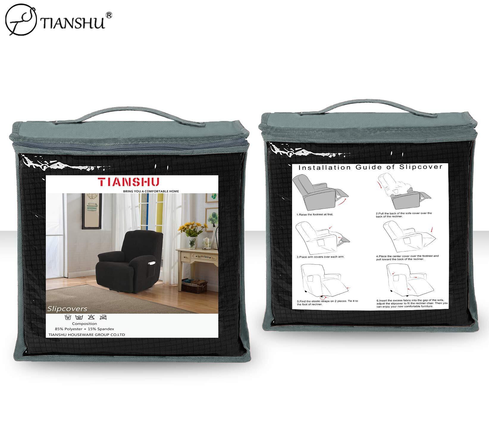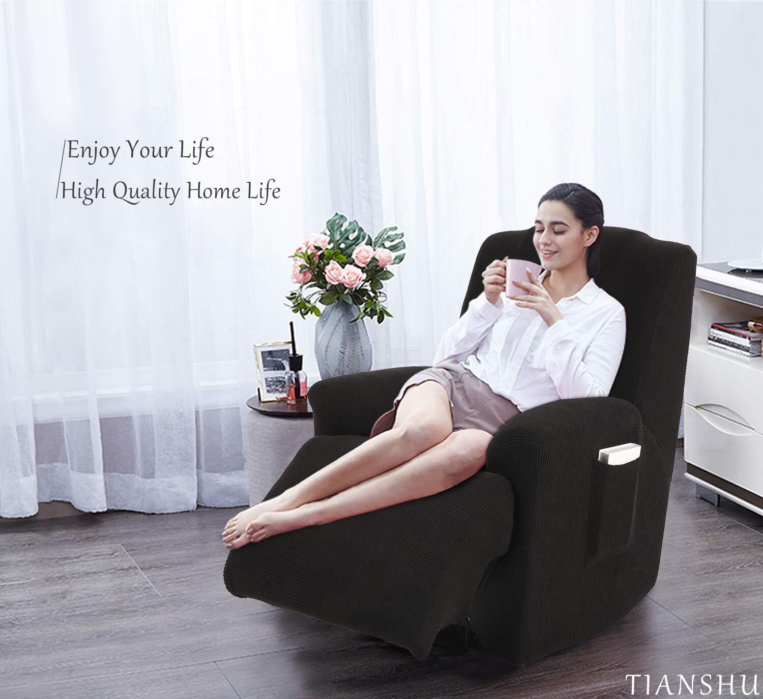 TIANSHU リクライニングチェアカバー, 無地 縦横弾力 ストレッチ フィットタイプ 肘付き 滑り止め 柔らかい 伸縮素材伸び良く 四季適用 超便利, リクライニングソファカバー(リクライニングチェアカバー,ブラック)