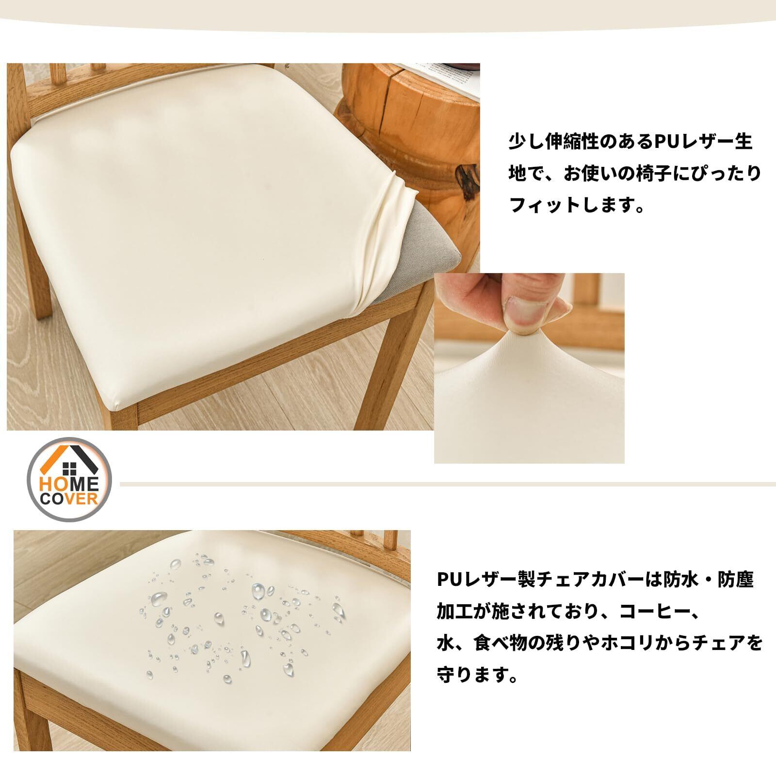 PU 座面カバー, 座面カバー 2枚 椅子カバー 座面 防水 耐久性 取り外し可能 ストレッチ 座面カバー ダイニングチェア用-2枚-クリーム色の白