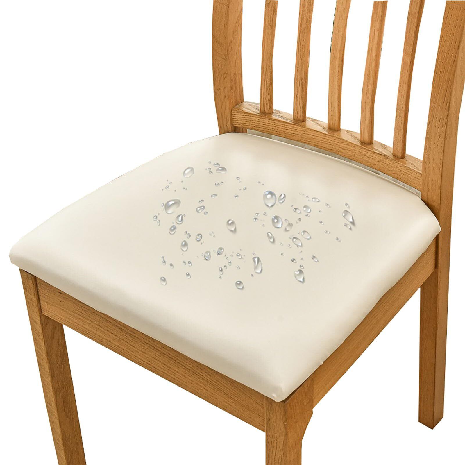 【特価商品】PU 座面カバー, 座面カバー 2枚 椅子カバー 座面 防水 耐久性 取り外し可能 ストレッチ 座面カバー ダイニングチェア用-2枚-クリーム色の白