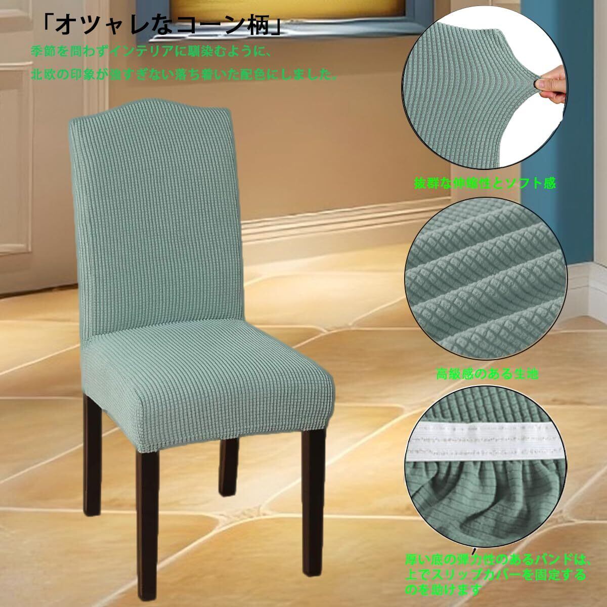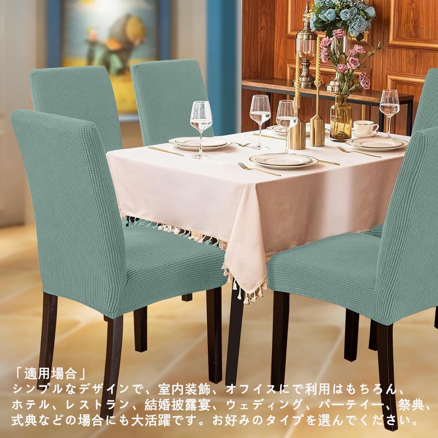 椅子カバー チェアカバー 2枚 伸縮素材 フルカバー ストレッチ チェアカバー 柔らかい イスカバー 家庭・結婚披露宴・お祝い・パーティーなど対応 取り外し可能 洗える (グリーン, 2枚)
