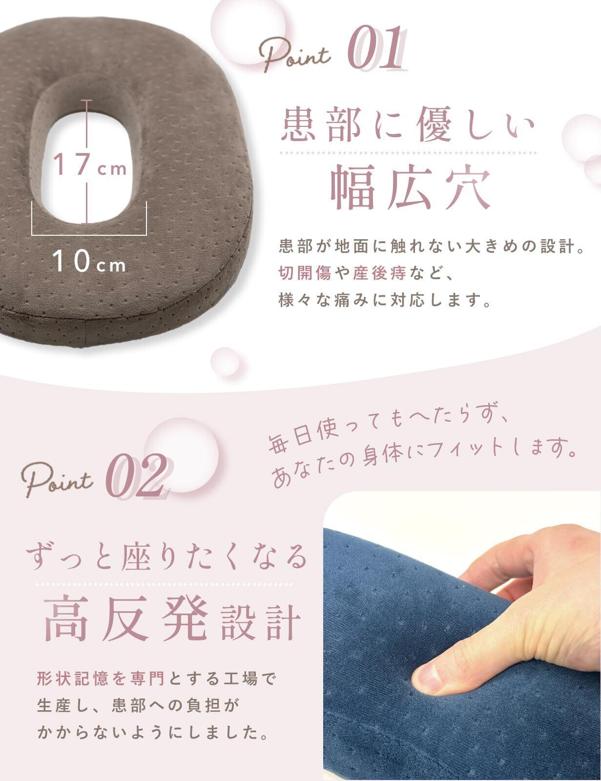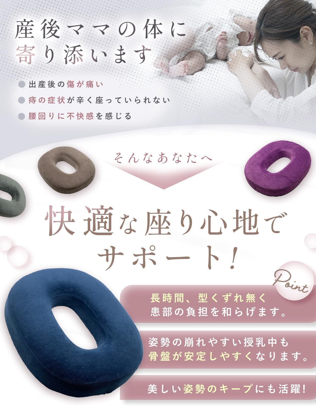 【座り心地に配慮した設計】産後 の痛みや 痔 などがのお悩みはありませんか? 座った際に中央が沈み込む円形デザインで、長時間でも快適な座り心地! デリケートな部位への圧迫を避けたい方、デスクワークや在宅ワークなど、座る時間が長いシーンにおすすめです。産後 の痛みや 痔 にお悩みのママに好評を頂いてます!
