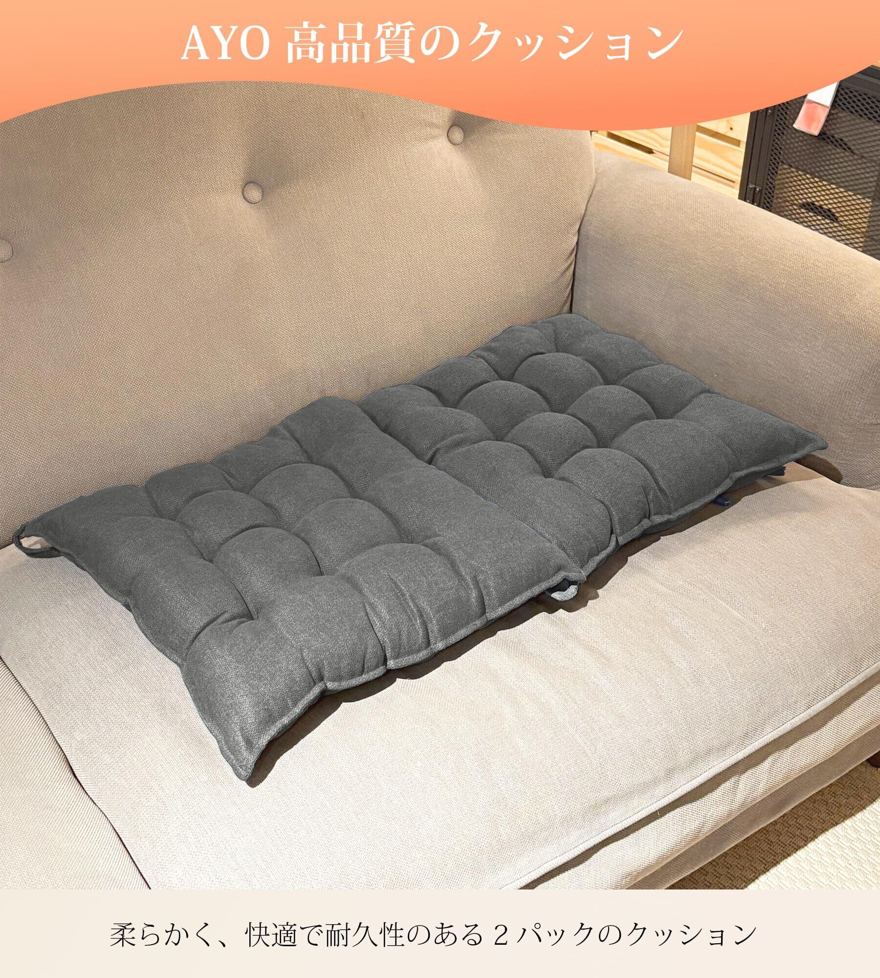 AYO 座布団 椅子クッション 2枚セット 紐付き 四角厚め座布団ヒップガード リネン風 オールシーズン 紐和食椅子クッション 椅子用床用 42x42x5cm ダークグレー