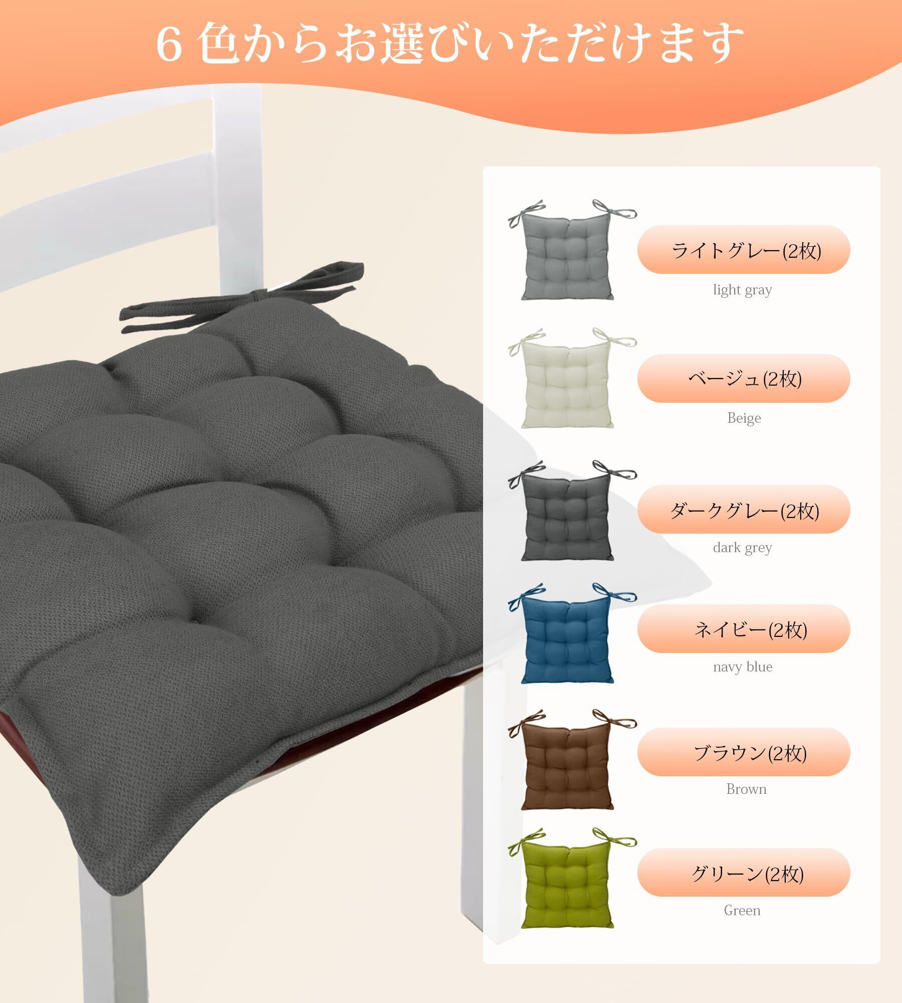 【特価セール】AYO 座布団 椅子クッション 2枚セット 紐付き 四角厚め座布団ヒップガード リネン風 オールシーズン 紐和食椅子クッション 椅子用床用 42x42x5cm ダークグレー