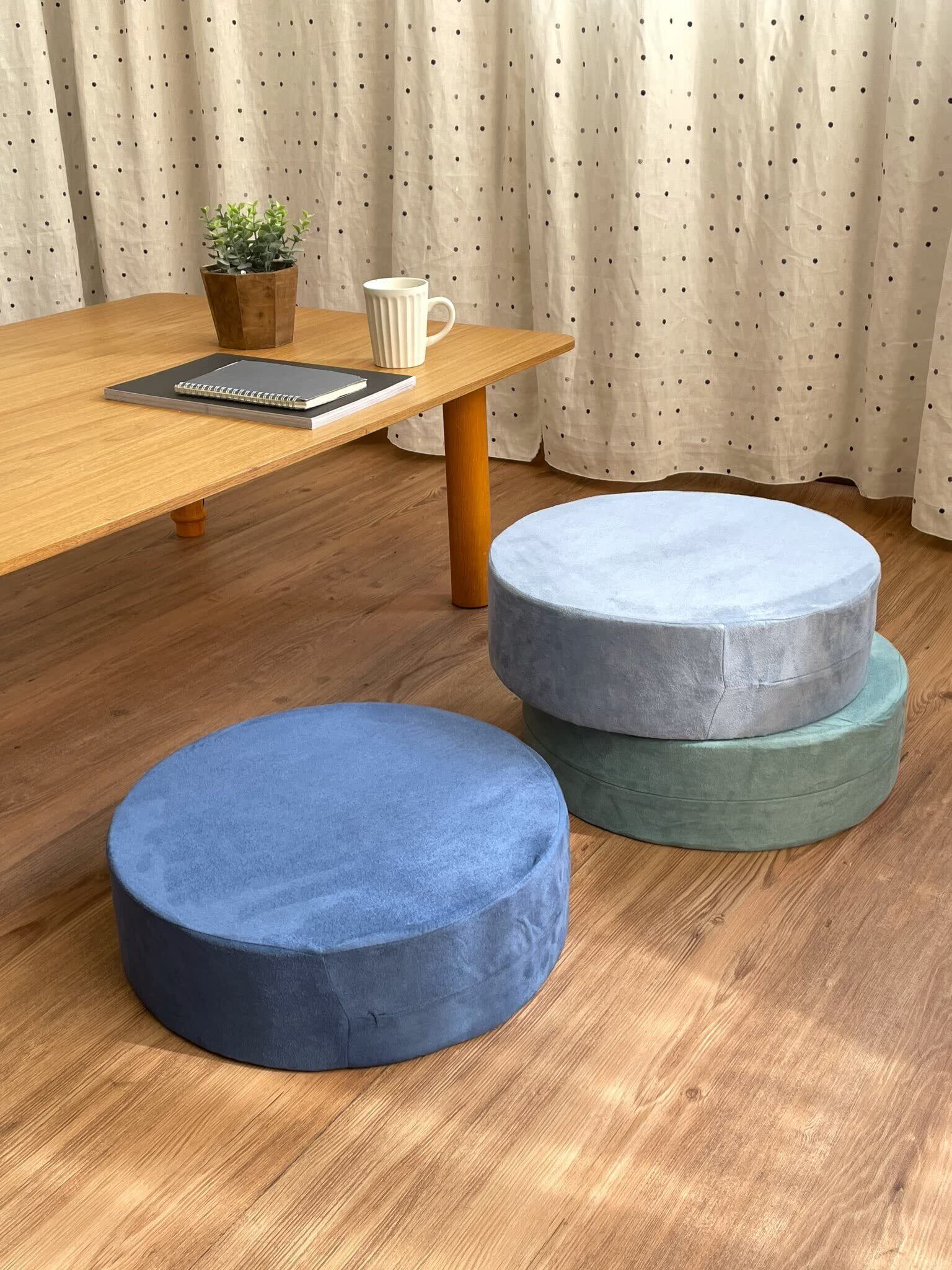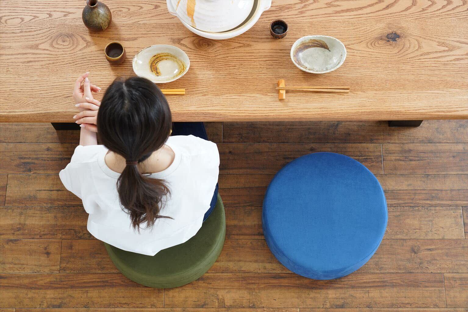 ちょっと腰掛け、ほどよい固さのスツールクッション。リビングや、ローテーブルやこたつでも快適に過ごせるアイテムです。スツールクッション直径40×12cm