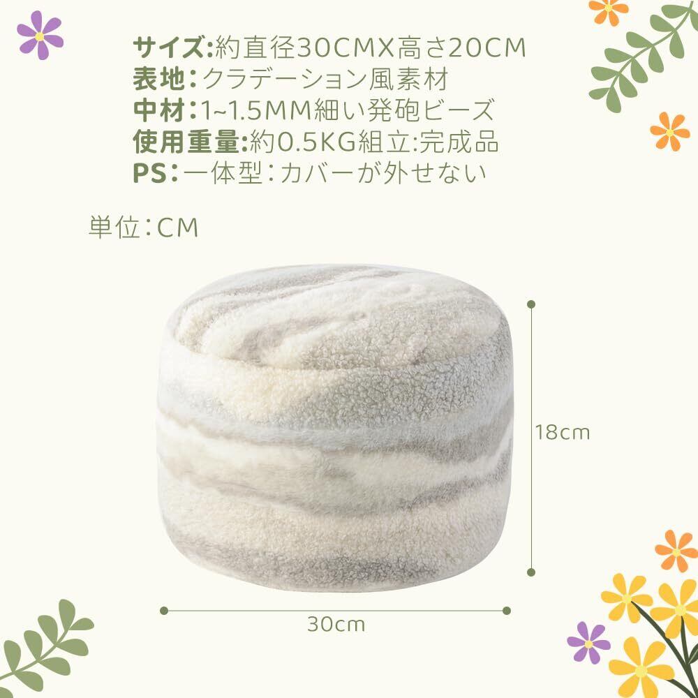 【直径30cm円柱型の小さいサイズ】直径30cmx高さ18cm。コロコロした形とサイズが魅力。ワンルームやスペースが限られるお部屋などにも手軽に置けちゃう小さなビーズクッションです。