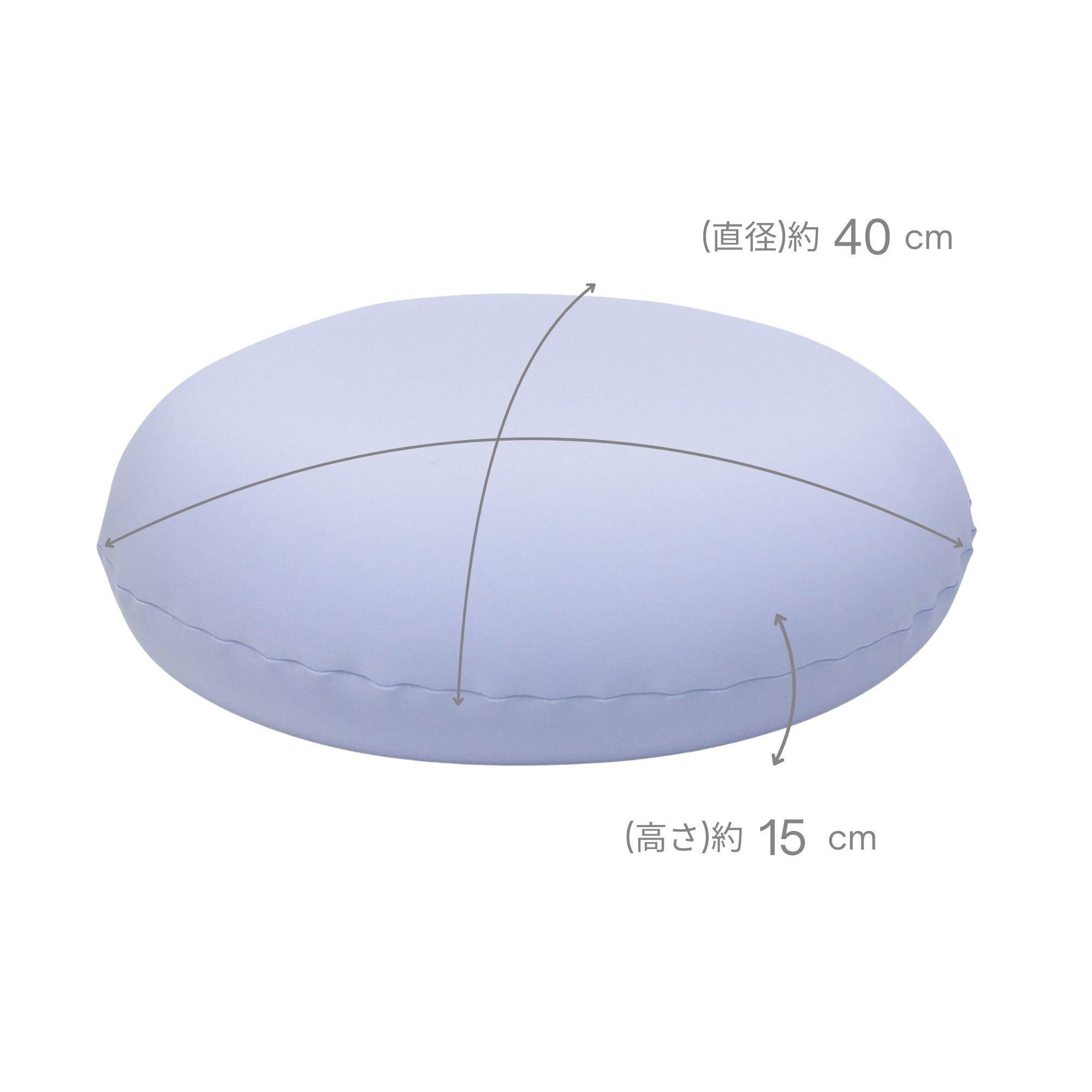 約φ40×H15 cm のまるいフォルムが身体に沿い、抱き枕・腰当て・膝枕・お昼寝まくらとマルチに活躍。