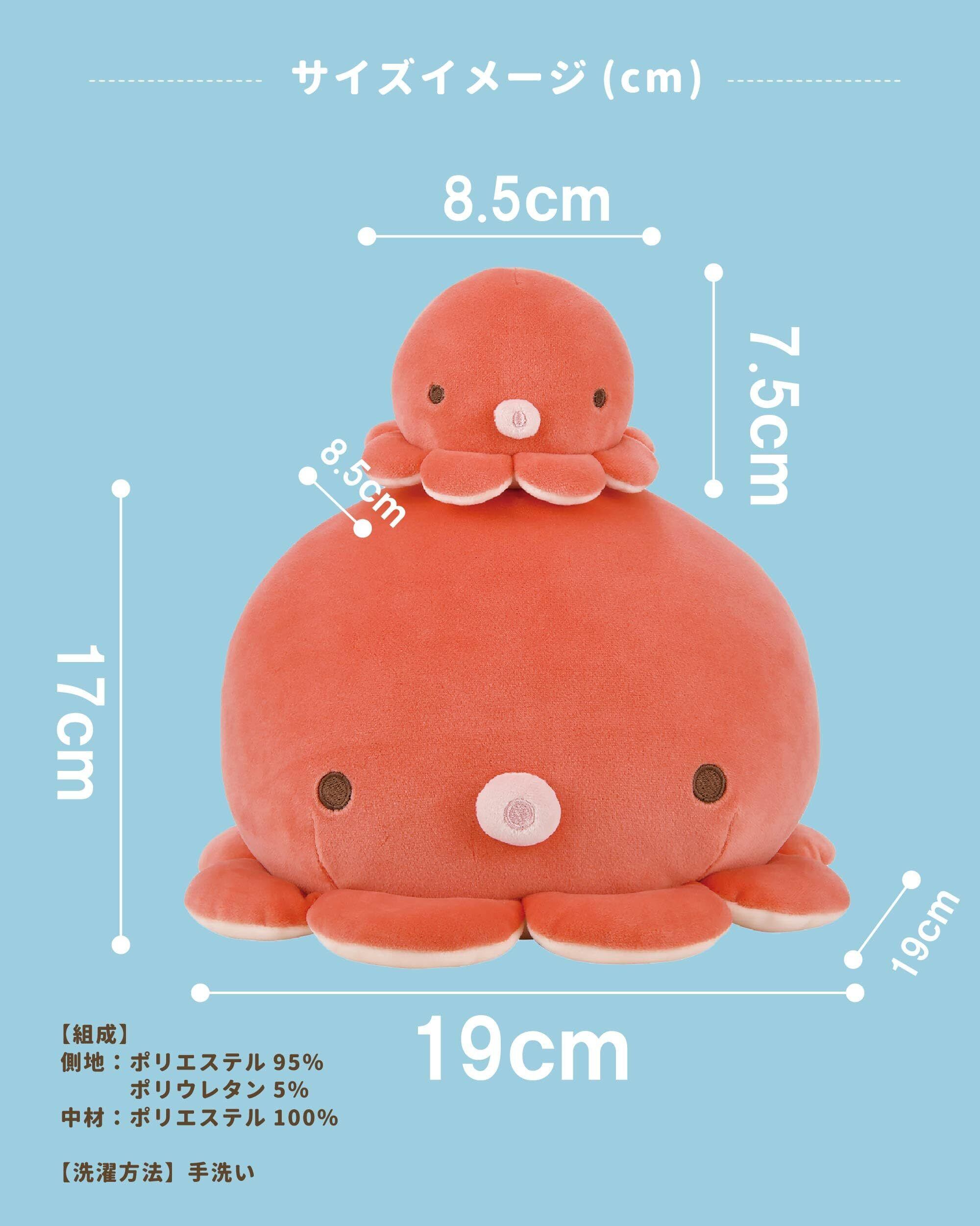 りぶはあと ボルスター マシュマロアクアミエ タコ (全長約19cm) ぬいぐるみ 腰当て 28209-22