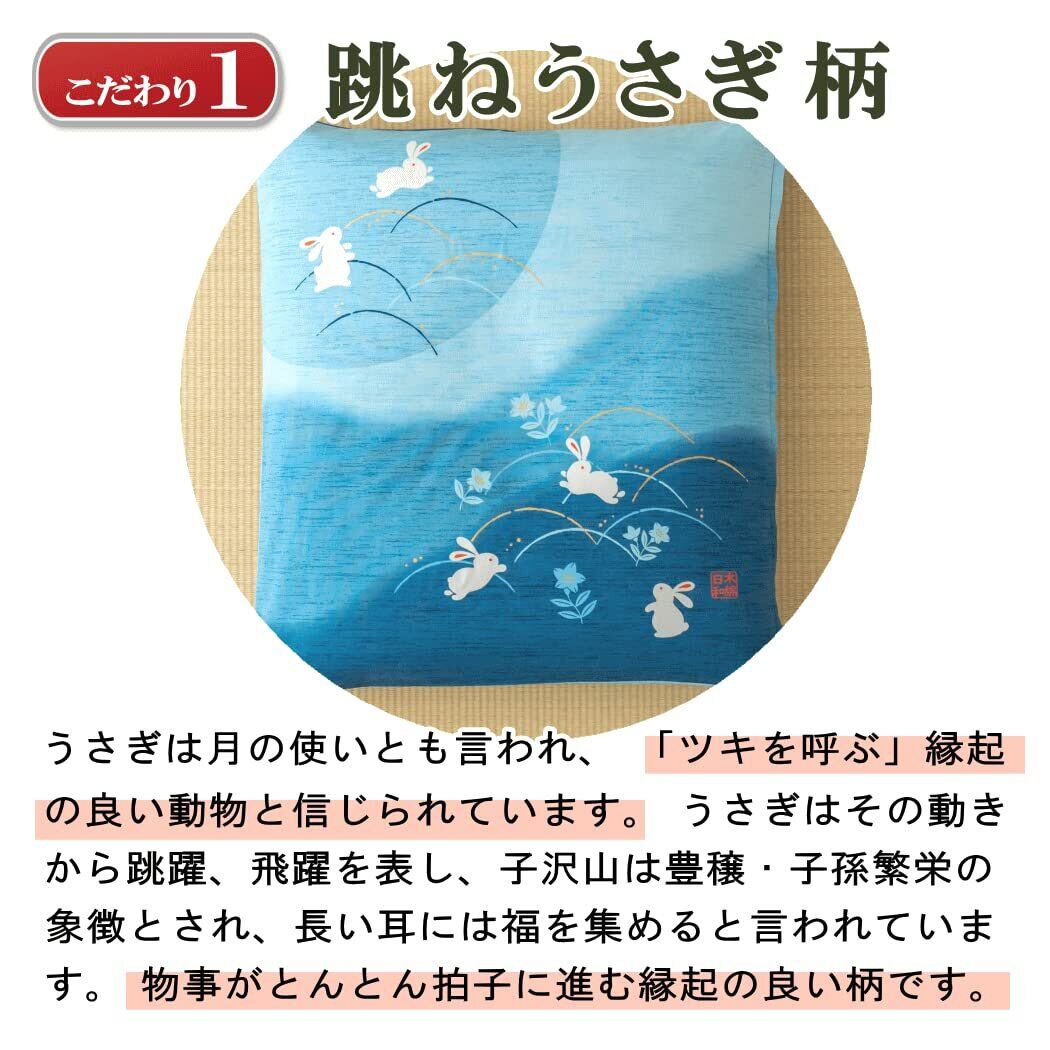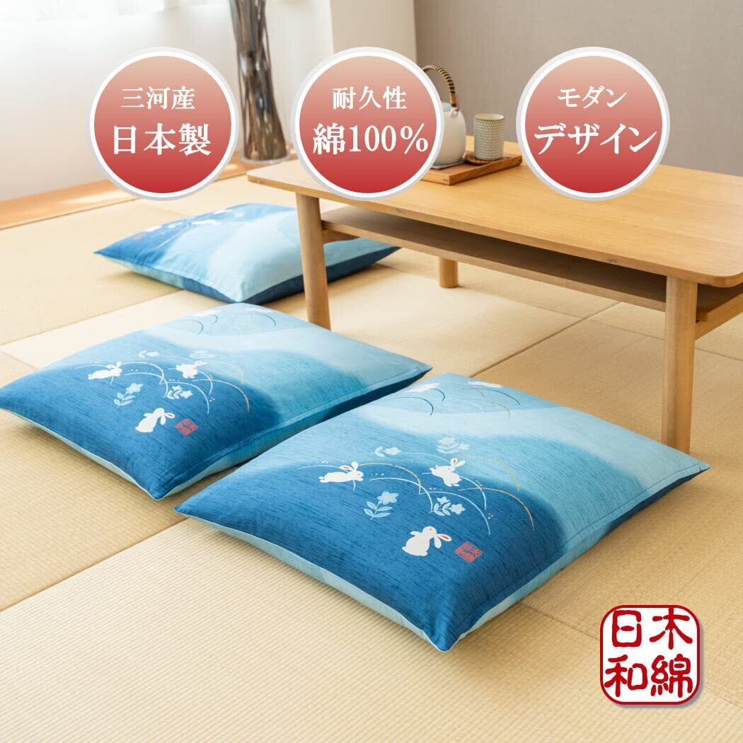 ■繊維の街、愛知県東三河地方蒲群市で生地の染工から縫製パッケージまで全て国内で仕上げた日本製です。伝統ある確かな技術で1枚1枚丁寧に仕上げています。■縁起の良い柄をプリント。うさぎは月の使いとも言われ、「ツキを呼ぶ」縁起の良い動物と信じられています。 うさぎはその動きから跳躍、飛躍を表し、子沢山は豊穣・子孫繁栄の象徴とされ、長い耳には福を集めると言われています。 物事がとんとん拍子に進むと伝わる縁起の良い柄です。■大口ファスナーで出し入れが楽です。■ご家庭でも簡単にお洗濯が可能ですのでいつでも清潔を保つことができてとても衛星的です。本体重量(1枚)約110g、綿100%生地を三河地方で縫製した耐久性抜群の座布団カバーです。