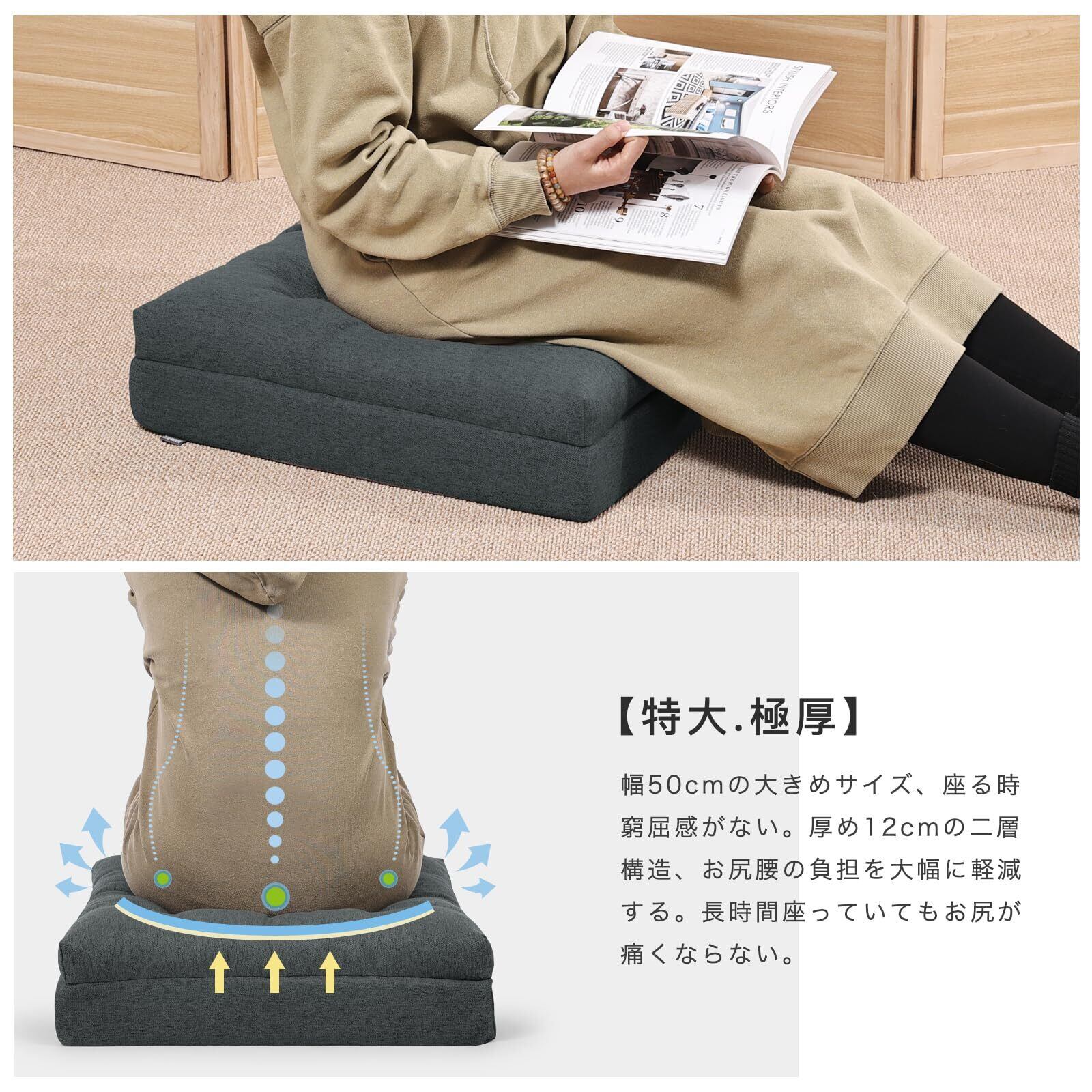 【サイズ】約幅50x50cm厚み12cm、本体重量:約1.6kg。耐久性に優れたウレタン、通気性も手触りもよいカバー、適当な硬さ座り心地よい座布団.フロアクッションです